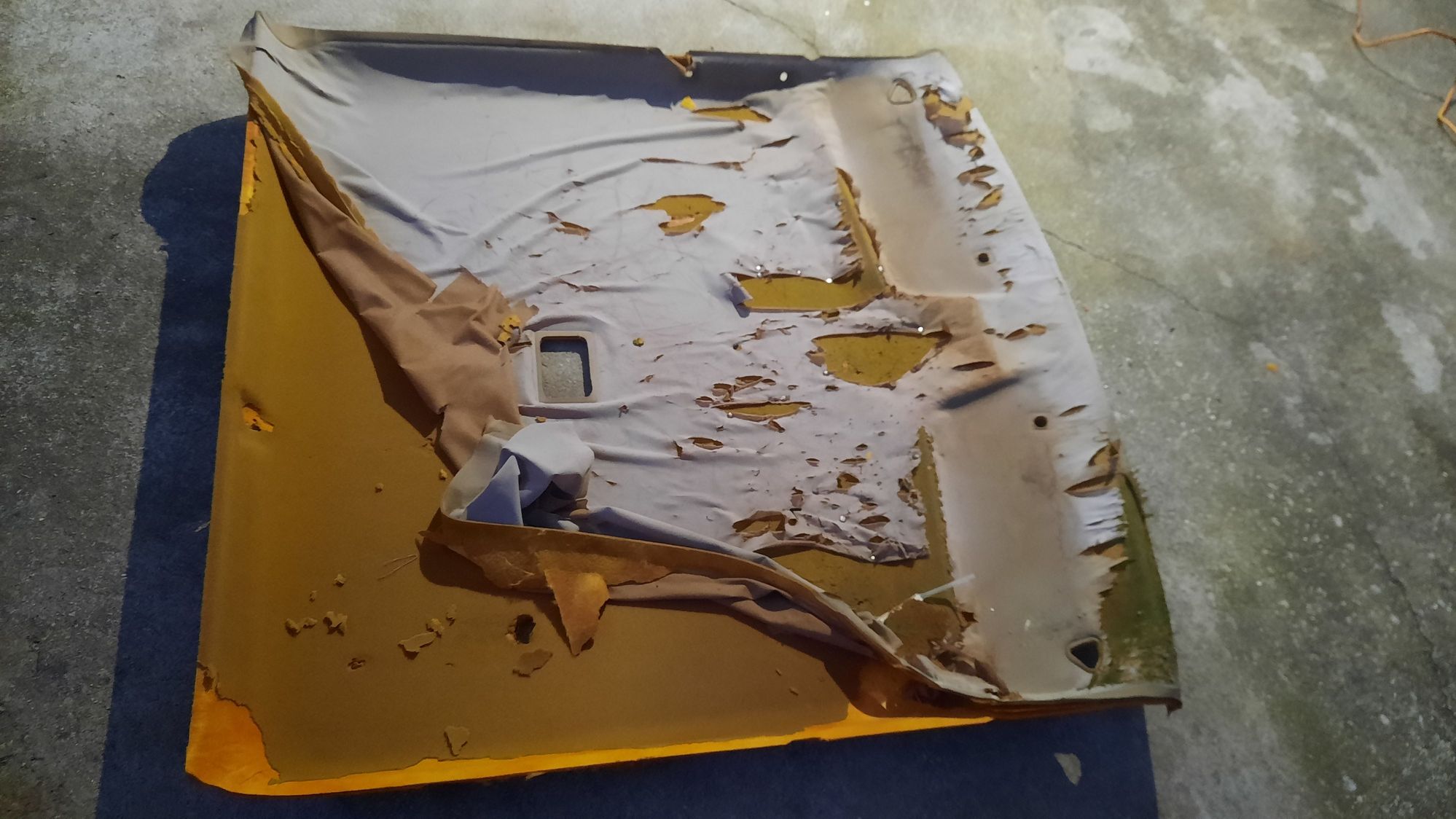 The headliner and the fabric had damage, cleaned it a gently as i could. After about 2 hours of gentle pulling and brushing i got it all cleared off.