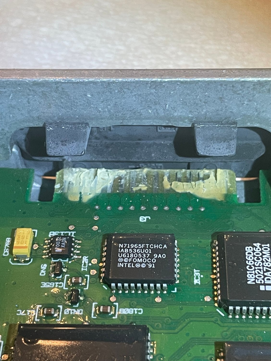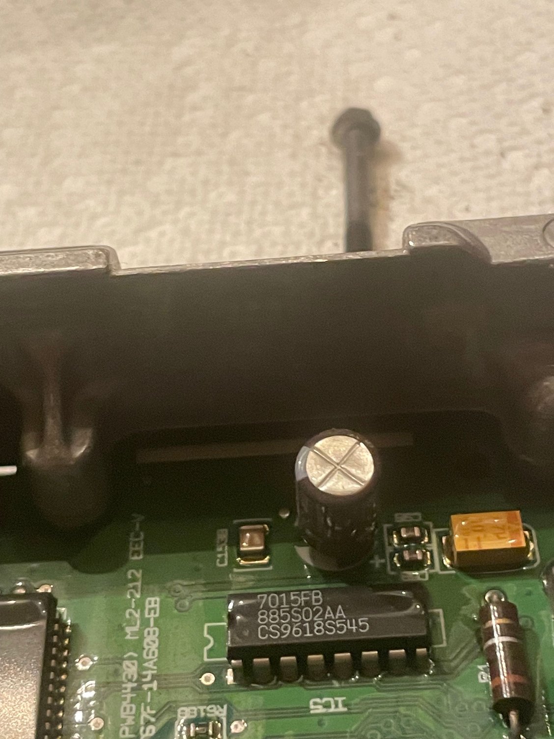 I have been having issues with my Ranger so I thought I would look at the PCM after reading several threads on how the capacitors could be bad. I pulled it out and one capacitor has a slight bulge at the bottom. The other one looks OK I dont see any burn marks Anywhere . But look at the third picture. I dont know whats going on there. Could that be giving me issues? I appreciate any help.