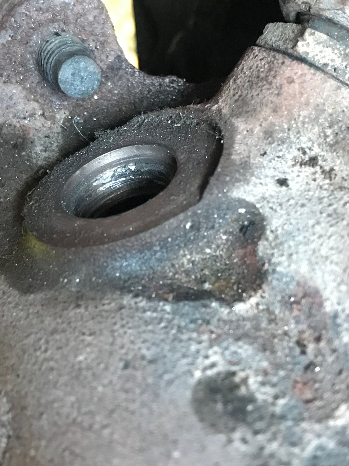 Still stuck with damaged manifold threads. Heating with propane Turbotorch for 30-45 secs and then picking at the threads and working the 18mm thread chaser is removing some fine shavings but no real momentum on getting it back to useable. I wonder if it can be drilled out and a helicoil installed? And if so what are the chances of drilling it straight enough to install a helical successfully with the manifold in the vehicle. Any thoughts are appreciated:)