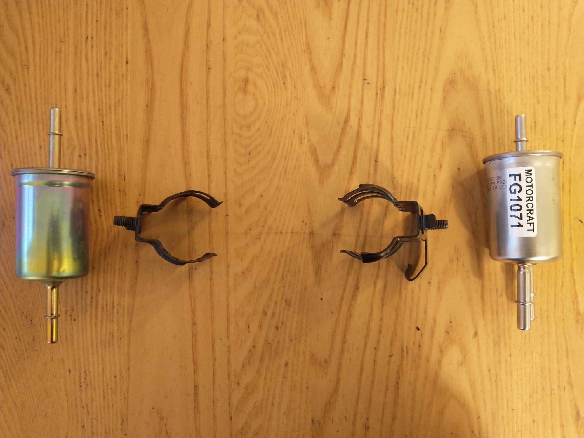 For anyone interested, the Motorcraft FG1701 fuel filter mounting bracket works with the 2.5L fuel filters. The mounting bracket on my fuel filter was completely corroded and broken, and I couldn't find another bracket specific for a 2.5L filter. The Motorcraft FG1701 filter looked similar in size and came with a mounting bracket so I thought I'd try it, and the bracket fits perfectly on my 2.5L filter.