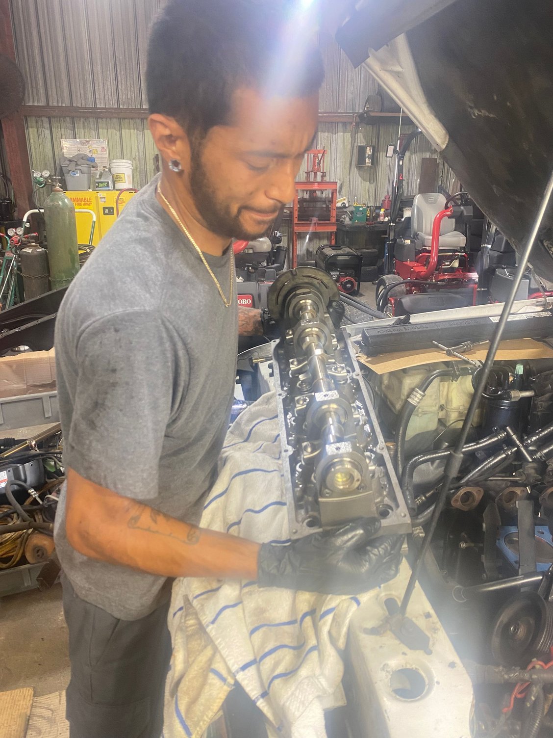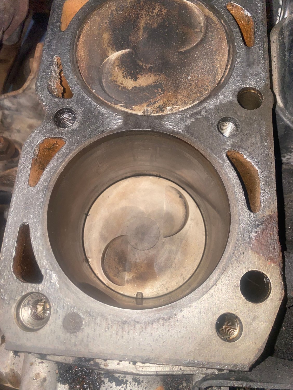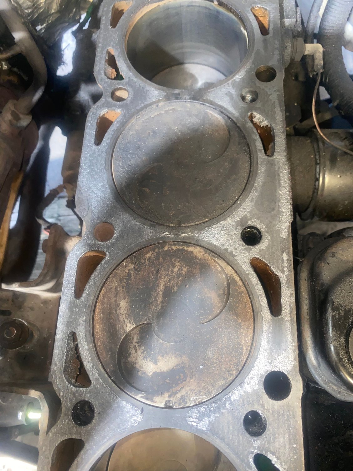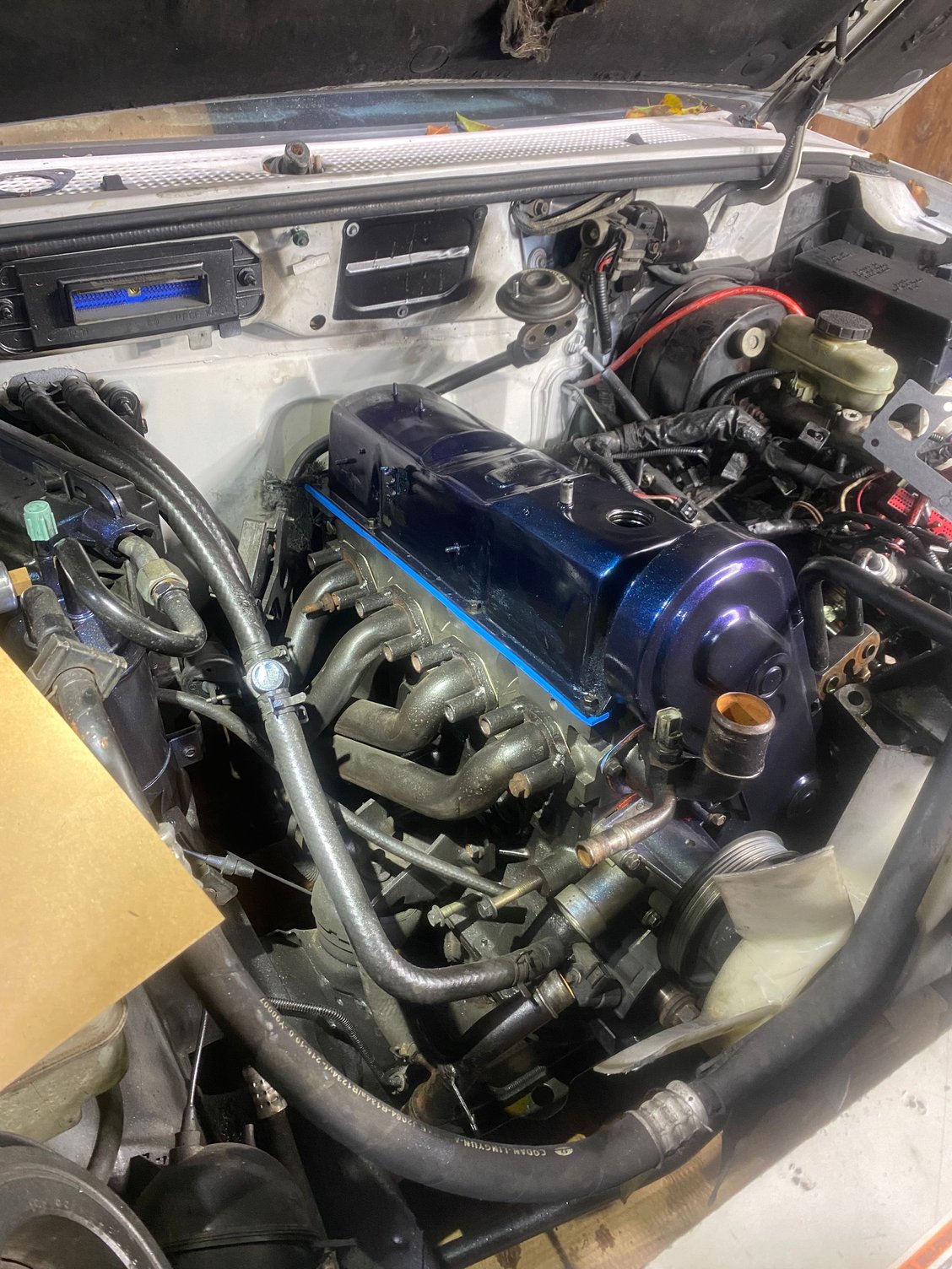 I did a big hall the next day I went to work the truck started to sputter on the highway I made it to work and I checked my compression. Cylinder one had low compression cylinder two had low compression cylinder three and four gave good compression I removed the cylinder head. Took the cylinder head to a machine shop they told me that the head was blown internally. I ordered a new head off allied motors. Installed new cylinder head with new gaskets. Engine ran for about a minute or two sounded pretty beefy. I stepped out to make sure everything was working properly inside the engine bay. Then the truck clunked and stopped running. It wouldn’t crank up again, I checked compression cylinder one gives me a reading of 30 psi, and cylinder 234 give me readings of 160 or better. I have already invested over 1800 into the car in over two years. I have already taken apart the truck about three times. I couldn’t get the timing right when I was building it back up so I constantly had to take the mounting brackets for the power steering and coil packs. Honestly I can’t keep taking time off work to fix it so it’s been sitting for about three months. Before tear down Gasket was also blown in back and front middle I cleaned as best as a guy who can’t drop the motor could There was questionable nic on 1 idk that show it came when I room the head off Cleans and places gasket next day head arrives Torqued to angle spec Torqued to ft pounds specs What it looked like when done