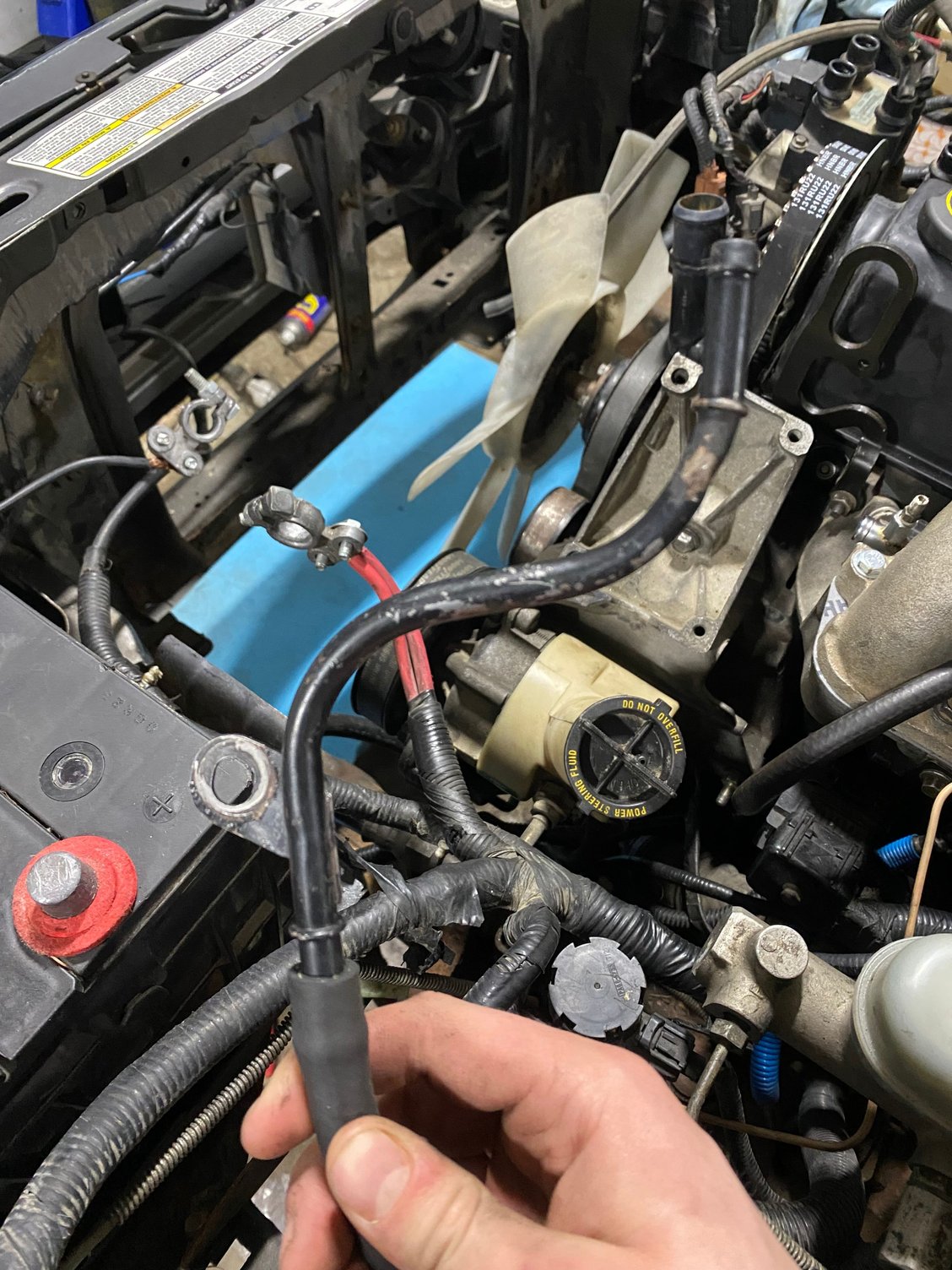 Hey, not sure what year your truck is but it looks really similar to my 95 from the pics. I had a hard vacuum line piece like that that connected from the carbon canister to under the throttle body on mine. The rubber ends of the hard line had eroded away so I replaced it with a soft vacuum hose all the way through.