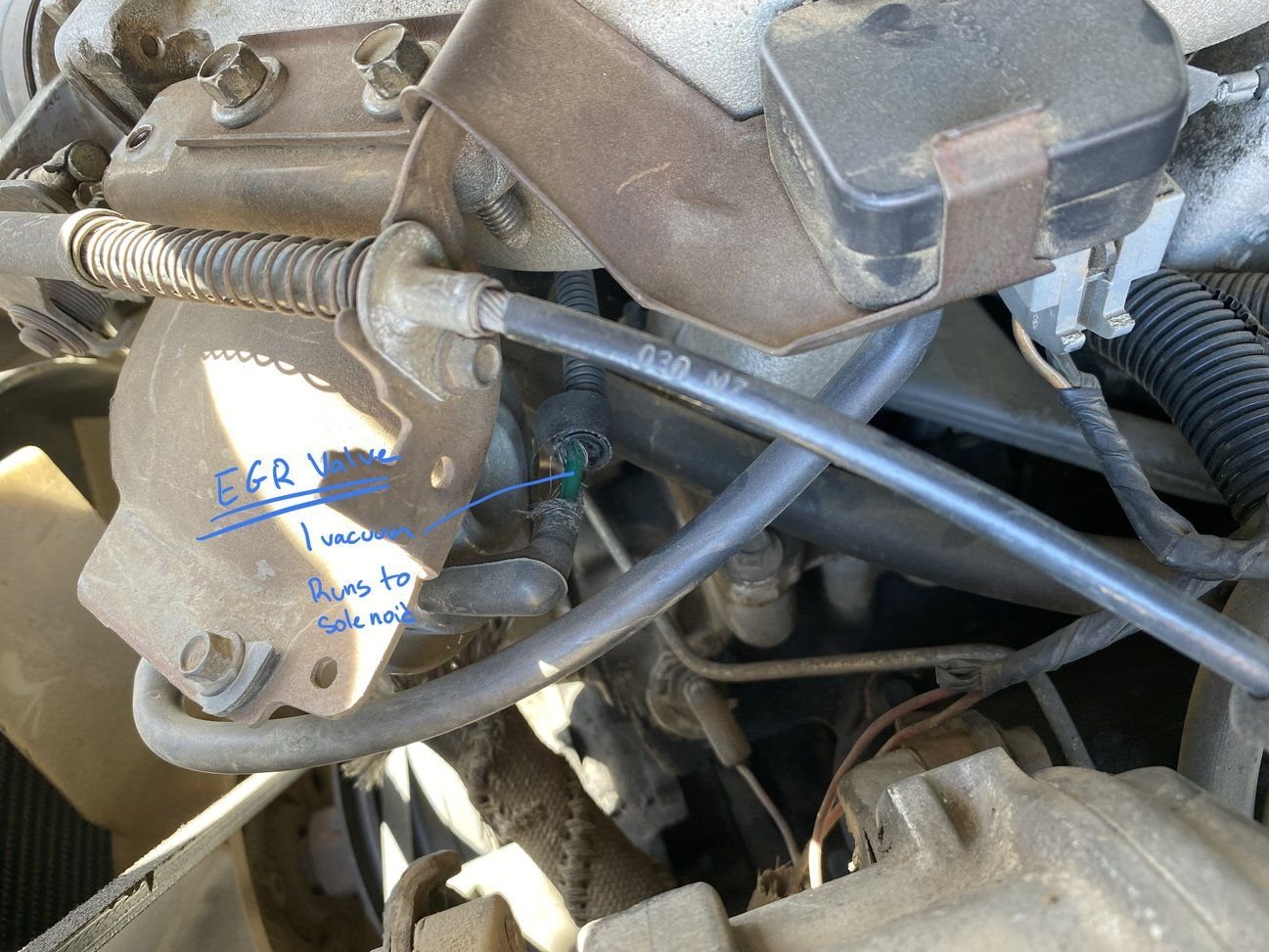 Vacuum line for EGR Valve is hooked up to the EGR Solenoid
