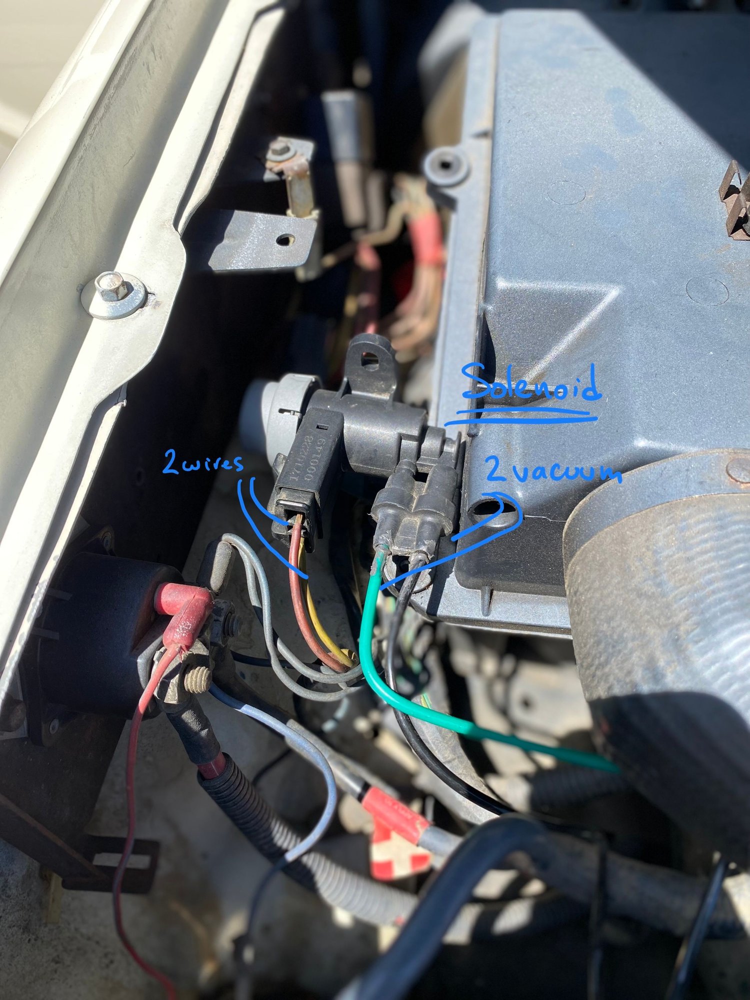 This vacuum valve is operated by bi-metalic thermal sensor on the air cleaner box, this sensor is mechanical, no wires, 2 vacuum lines, one to the vacuum source, like vacuum reservoir, and one to the vacuum valve on the cold air intake tube