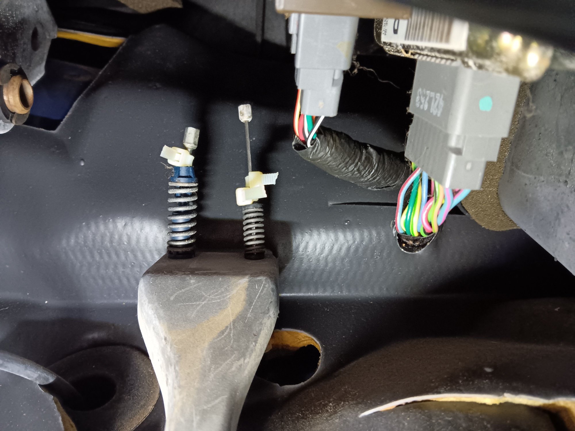 My question is whether the kick down cable is supposed to have that much slack in it. I don't see how it serves any function like this. I can't move the cable in or out by hand, so I assume it's attached at the other end. Is it supposed to be like this?