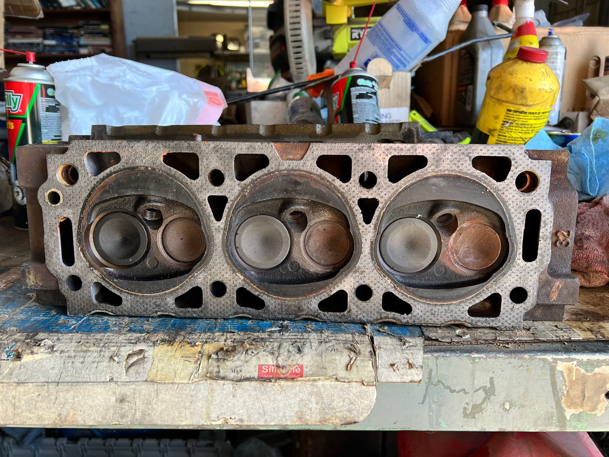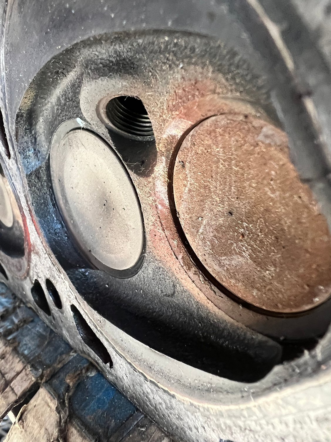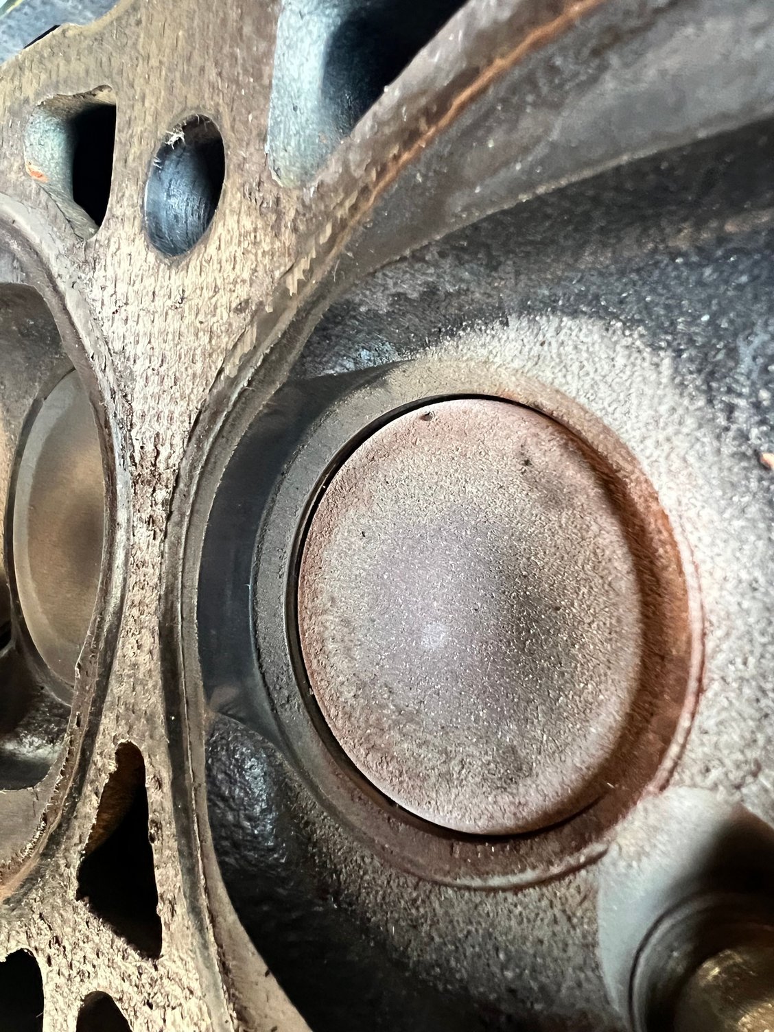 I'll post more detailed pictures of my valves but there is definitely some exhaust valve recession going on with my heads.