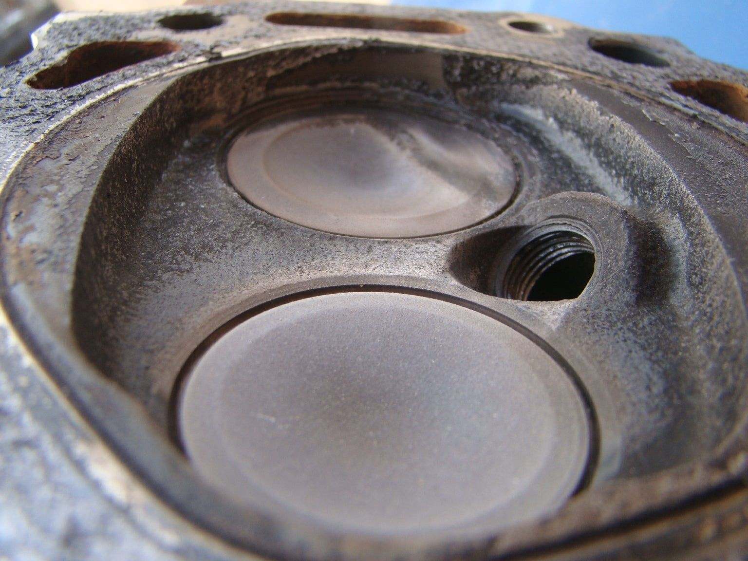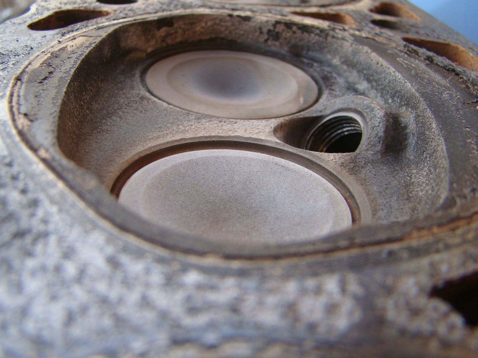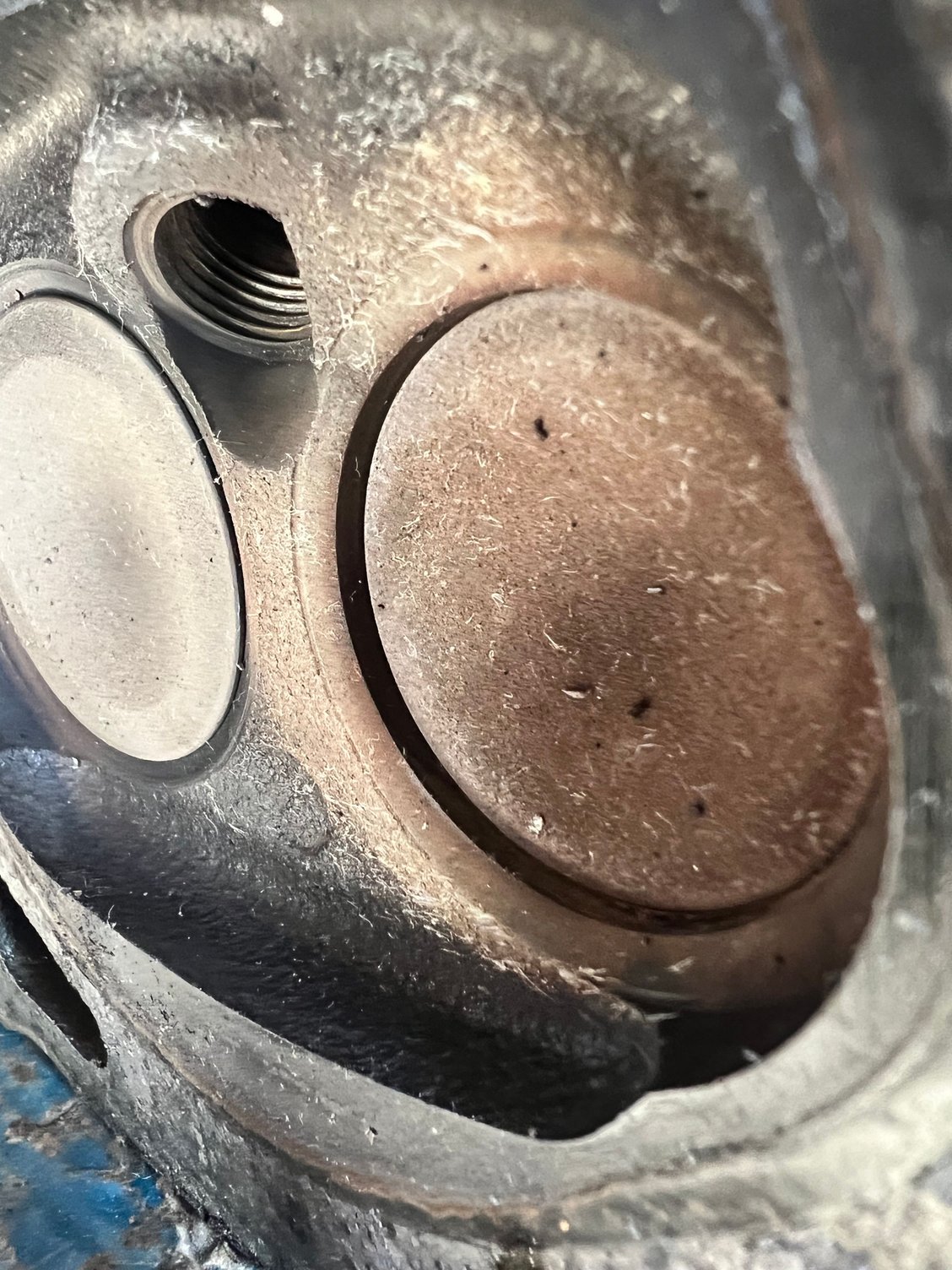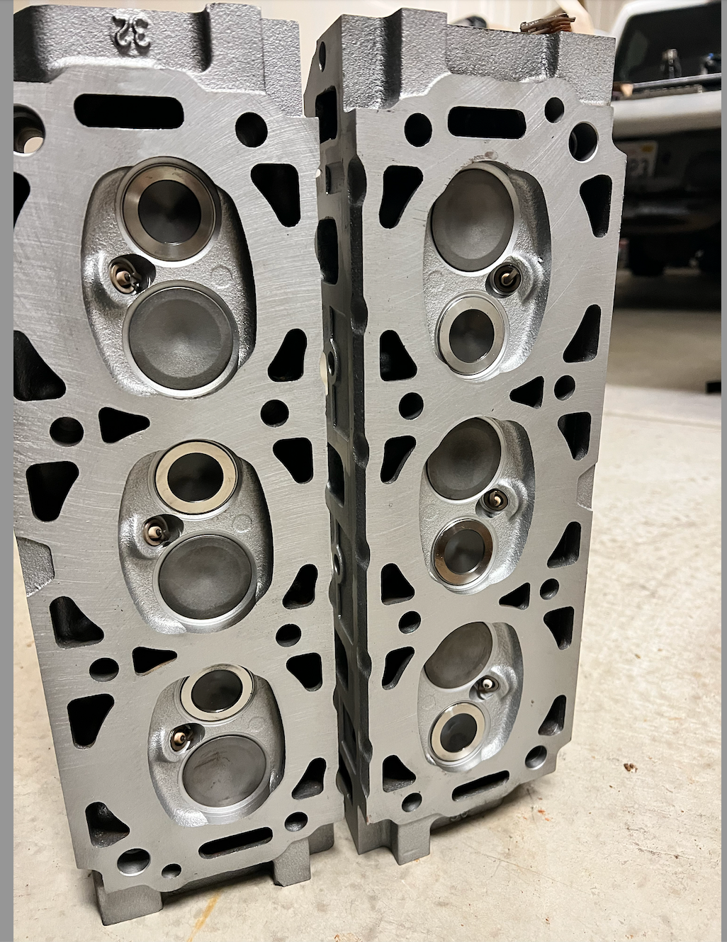 I'll post more detailed pictures of my valves but there is definitely some exhaust valve recession going on with my heads.