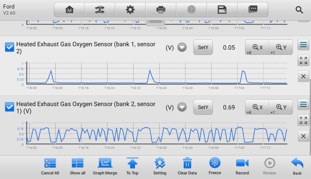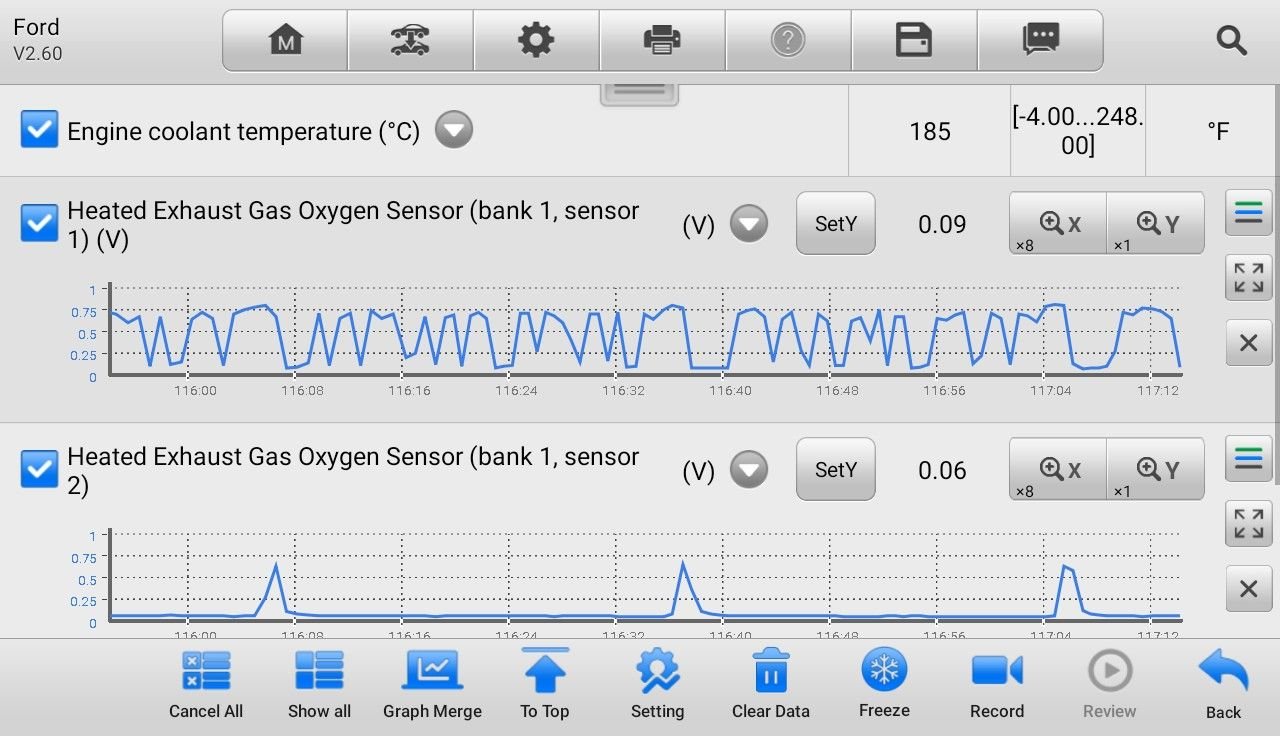 I went out again this is the o2 sensors warmed up and I also scalled it out for more detail. I don't remember if I said I have a small shake at idle. I thought power balance didn't show up but looking at the screenshot of it on my phone, you can definitely see she's not running perfect except on cylinder 6. And it's only allowing one picture again...