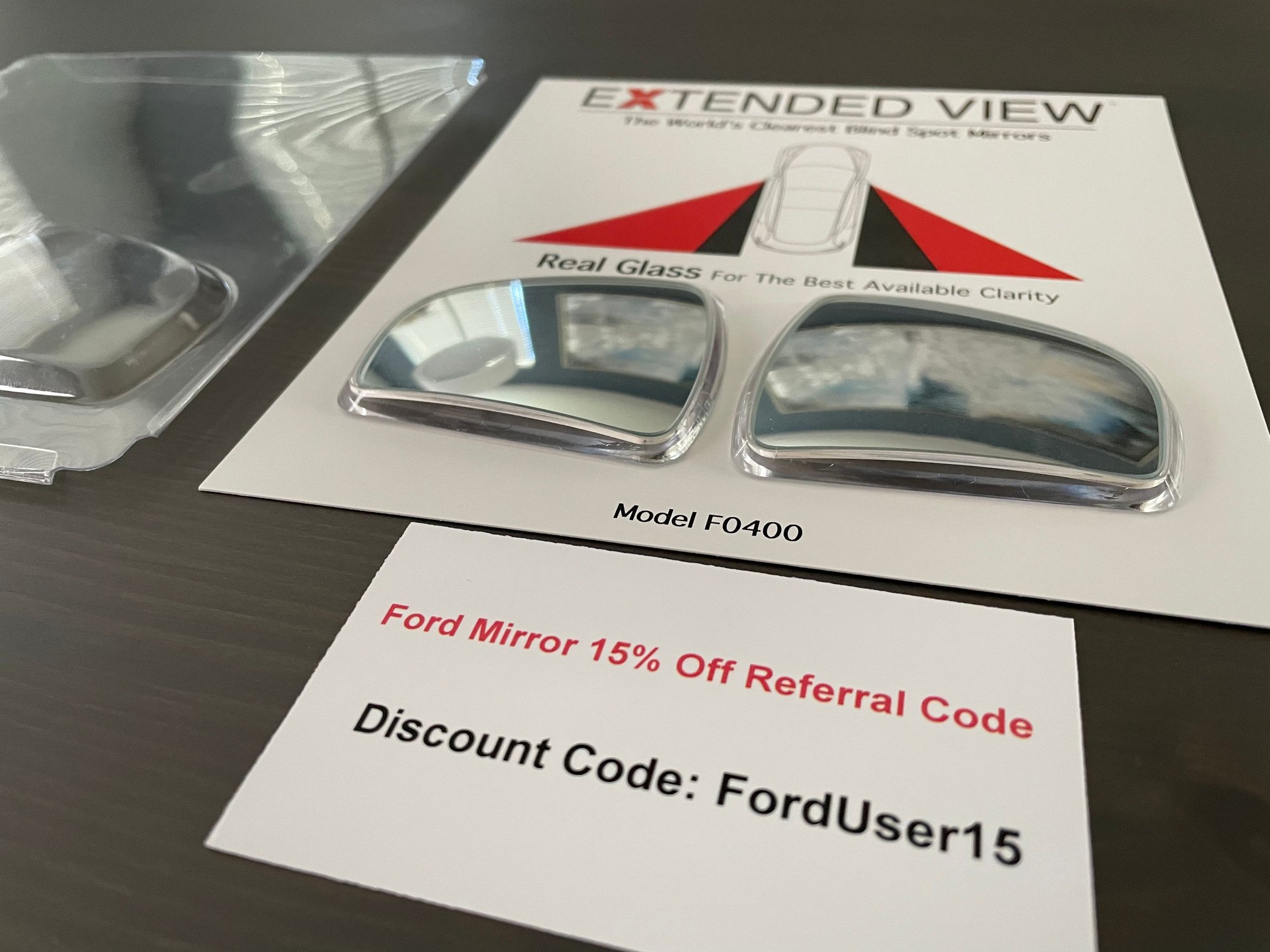 Really nice quality, fits our mirrors well and makes a notable difference. I've tried other spot mirrors in the past and they usually have a pretty far away look and these don't. They came with a referral code, which didn't help me but it might help you