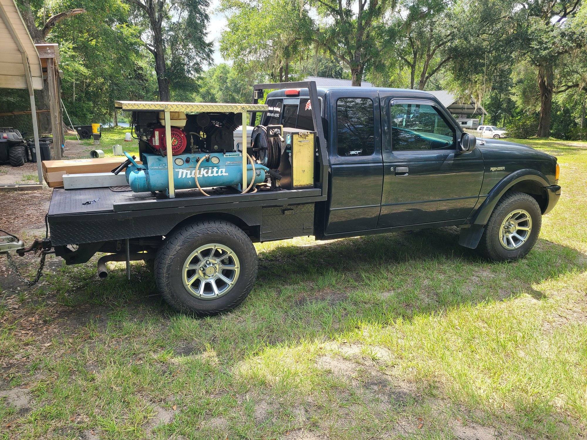 Nice setup there wow! Love the little rain cover over your compressor/gen? How did you have enuf room 2 get that left front one out,I really don't want to take top of thermostat off in order to get room to remove the one temp send unit about 2 inches from tensioner, I only have one sending unit,closest hole nearest valve cover is a dead hole, but still can't get a socket or even a ratchet wrench between sending unit and tensioner,plus that slide in clip that keeps sending unit in faces back toward intake valley,can't even get to that!