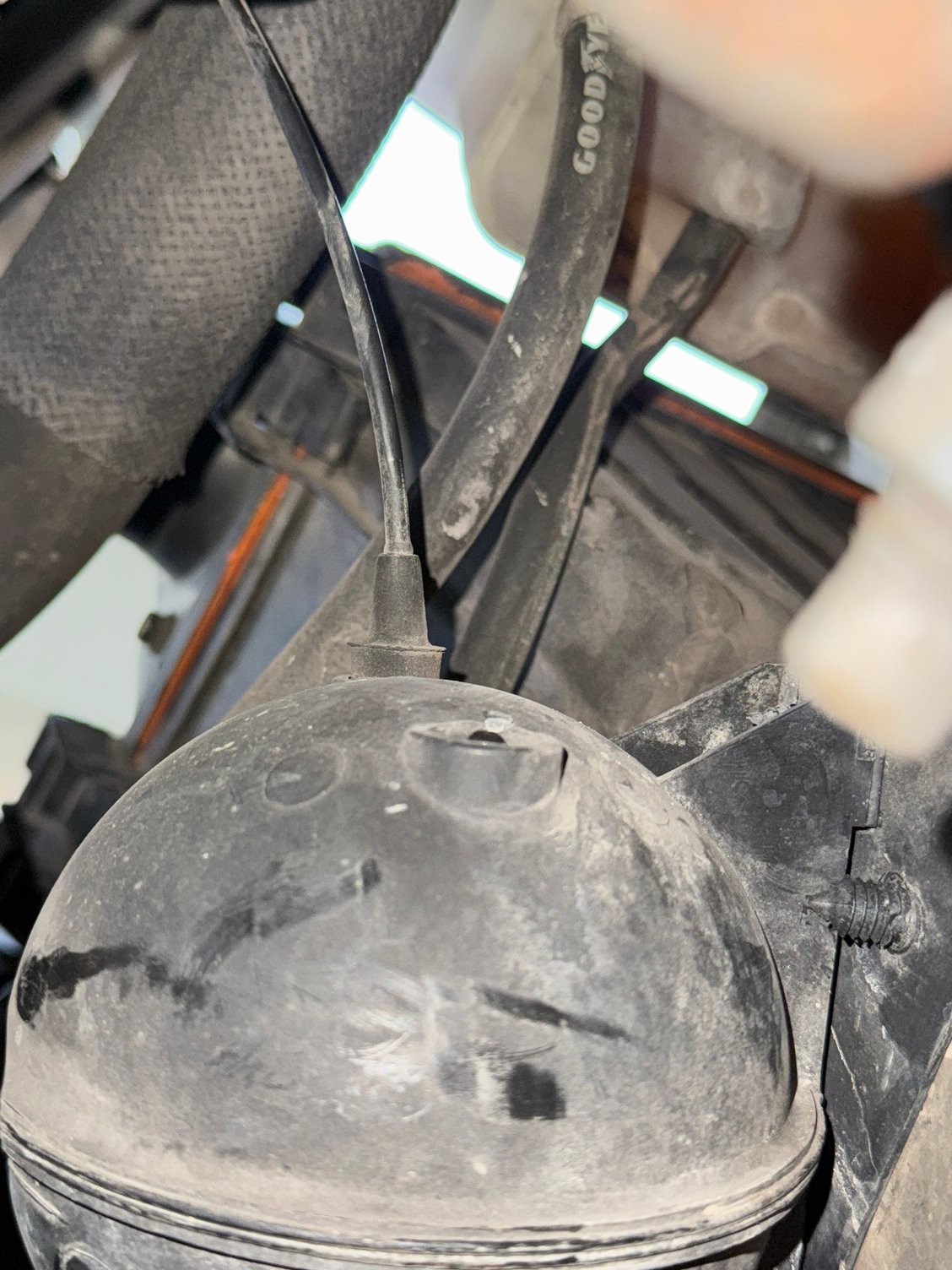 Recently replaced spark plugs which were a pain in the butt, drove to work the next morning and realized only the defrosted works. I check out the vacuum lines and notice the vacuum canister ball thing is missing a line, it must’ve come off when I was doing plugs. With research the one on the ball is the main vacuum source, the one that’s missing is supposed to go in the firewall and it’s gray? But I. Don’t see a gray line that is disconnected. A gray line that comes from the firewall splices in to a black line and goes to the heater valve. I can’t seem to find the missing line anywhere