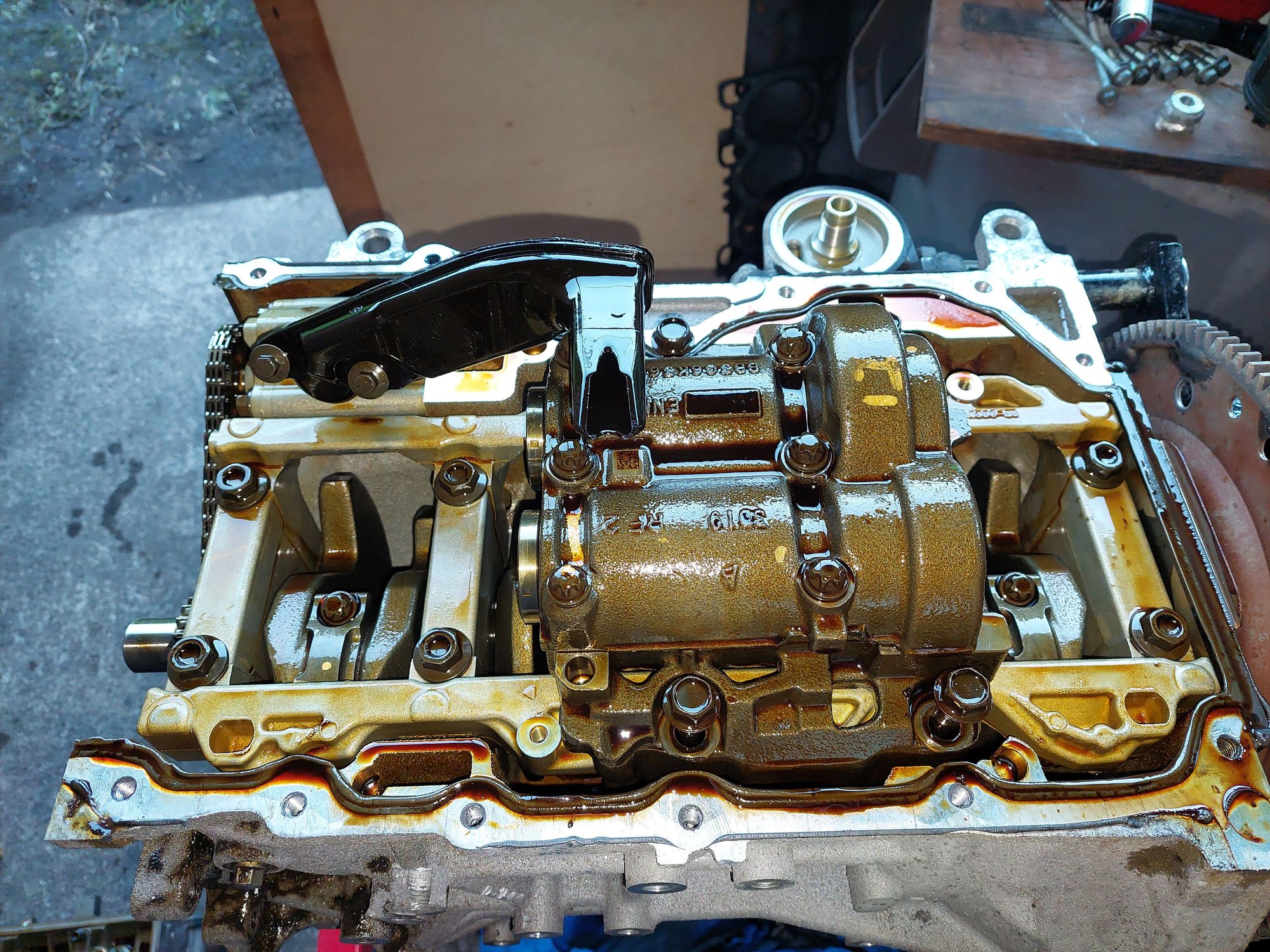 Never pulled apart a Duratec, so gotta ask, in pic 5, the under side with oil pump pickup, what does the helical gear between cylinders 3 and 4 drive?