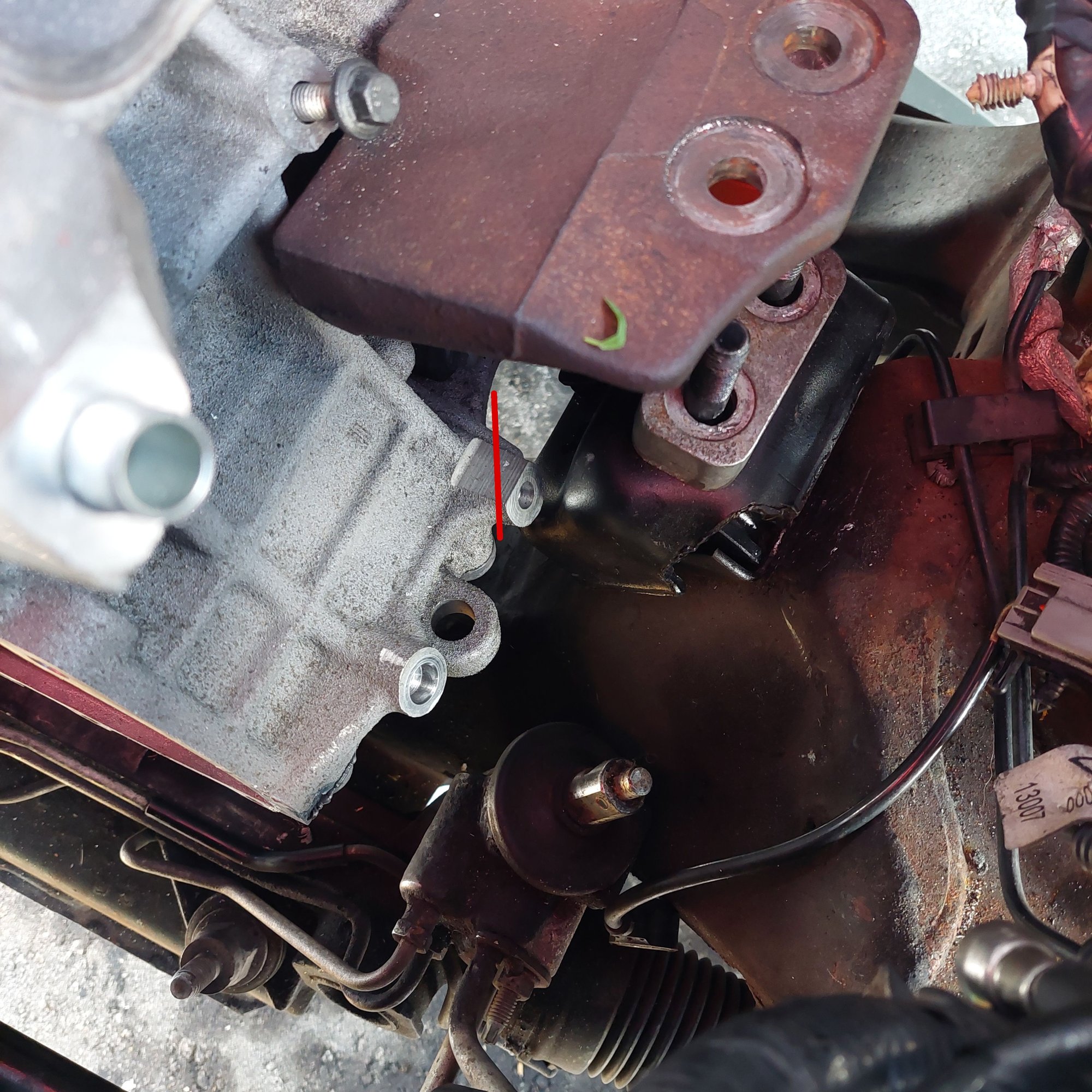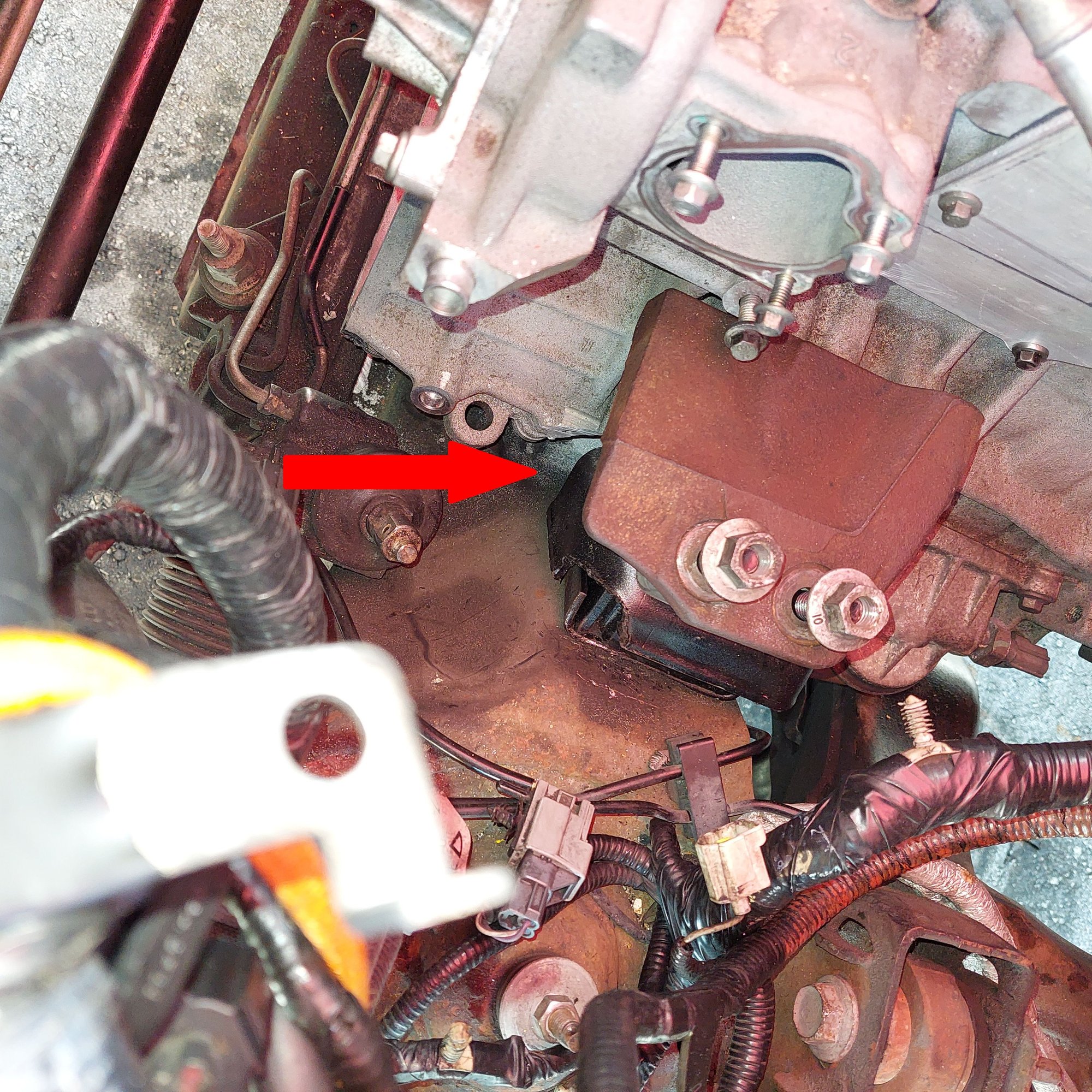 Next, it's time to cut the block so it fits in your Ranger. You will need to remove a threaded stem and cut the part of the block it screws into so when you are installing the block in your Ranger it does not get caught up on the engine mount, you must do this or the block will not install. I just use a hacksaw to cut as close to the block as I could without cutting into the oil pan thread. See the red line to see how to cut it.
