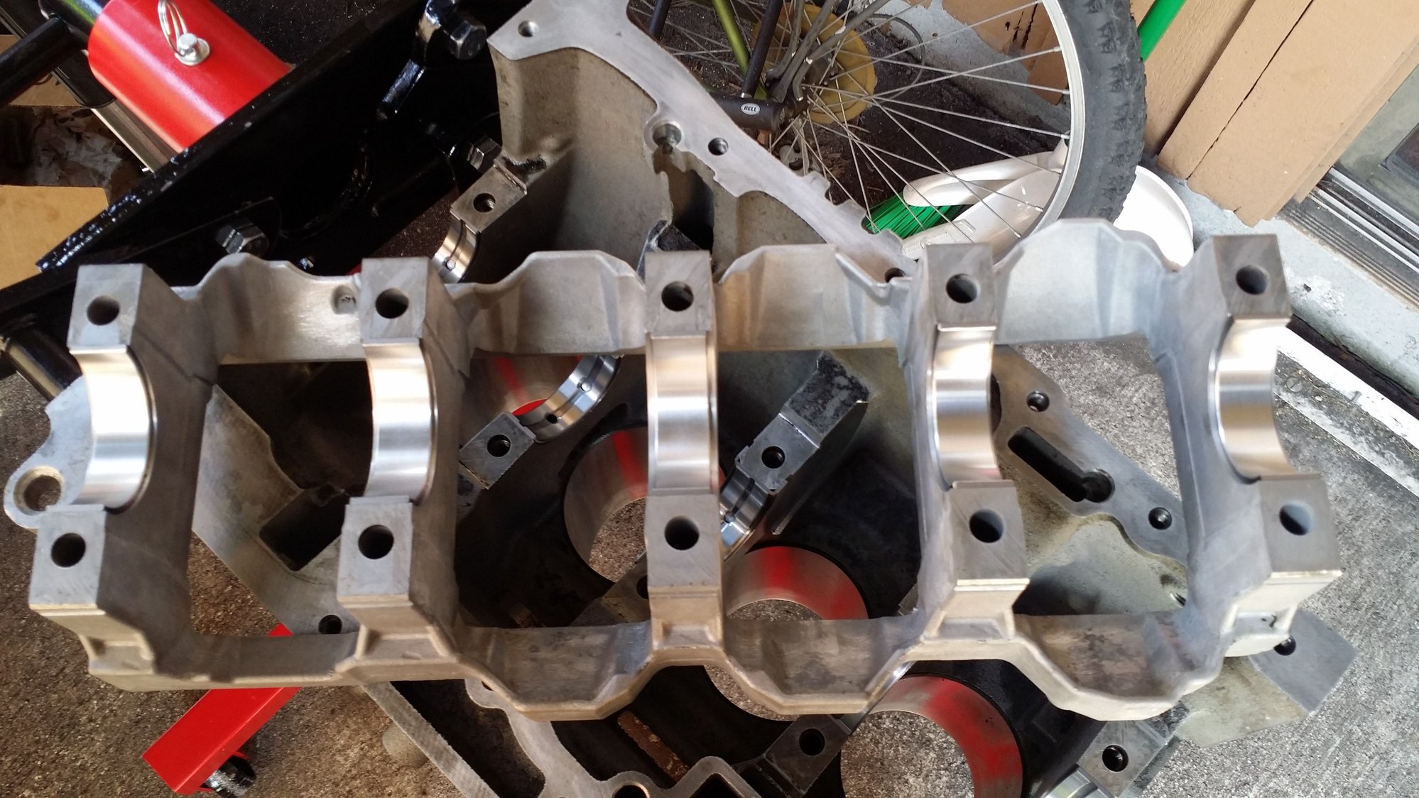 Here are some pictures of the short block build. All stock sized bearings for mains and rods. It went together easy.