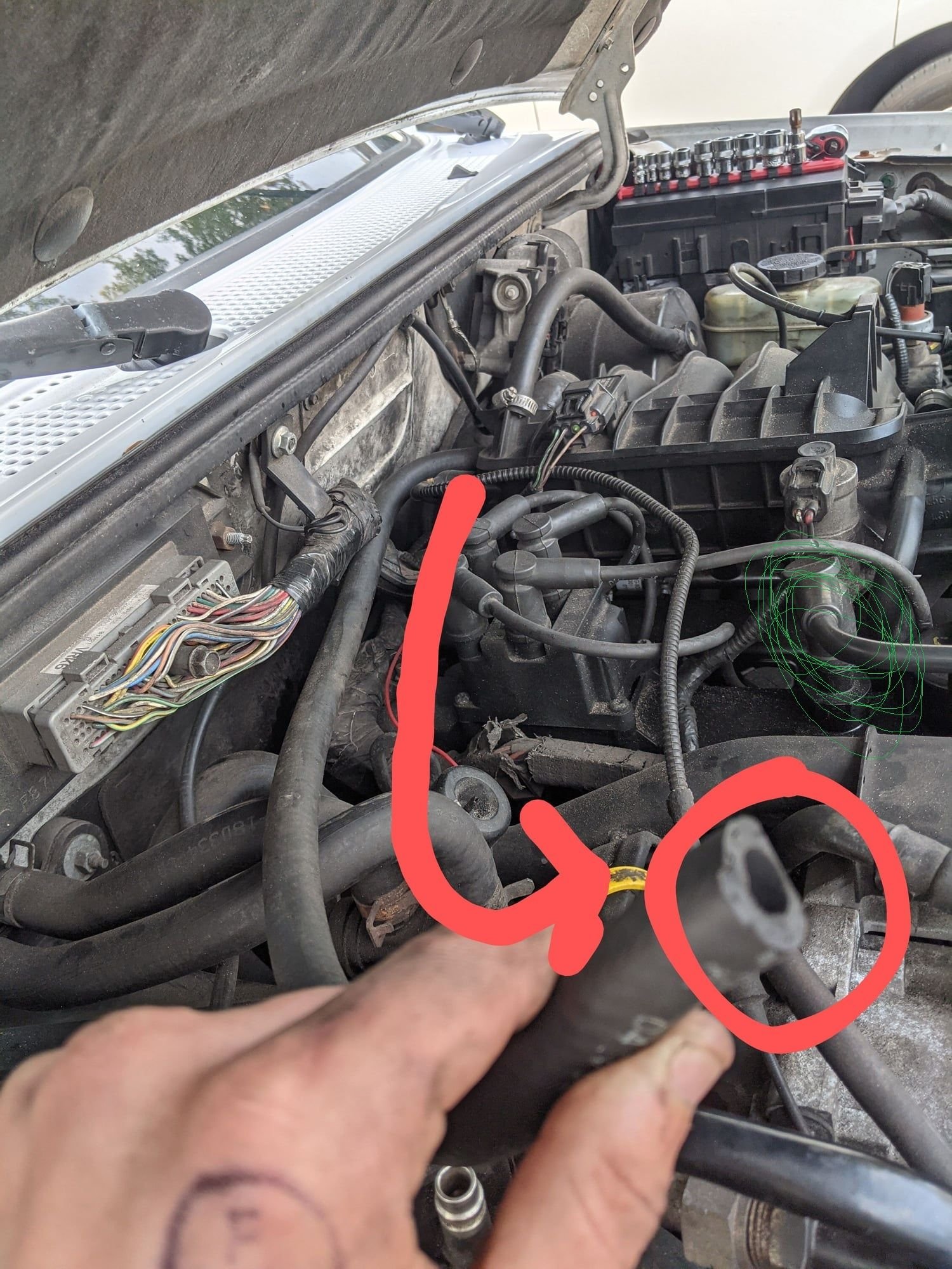 Greetings. I have a 2002 Ford Ranger with the 2.3l engine. About a year ago, I did some work to the intake manifold, and ended up not being able to locate the spot for the rear air hose shown in the first two pictures. I'm trying to figure out where this hose goes, and I haven't found anything online. Thank you.