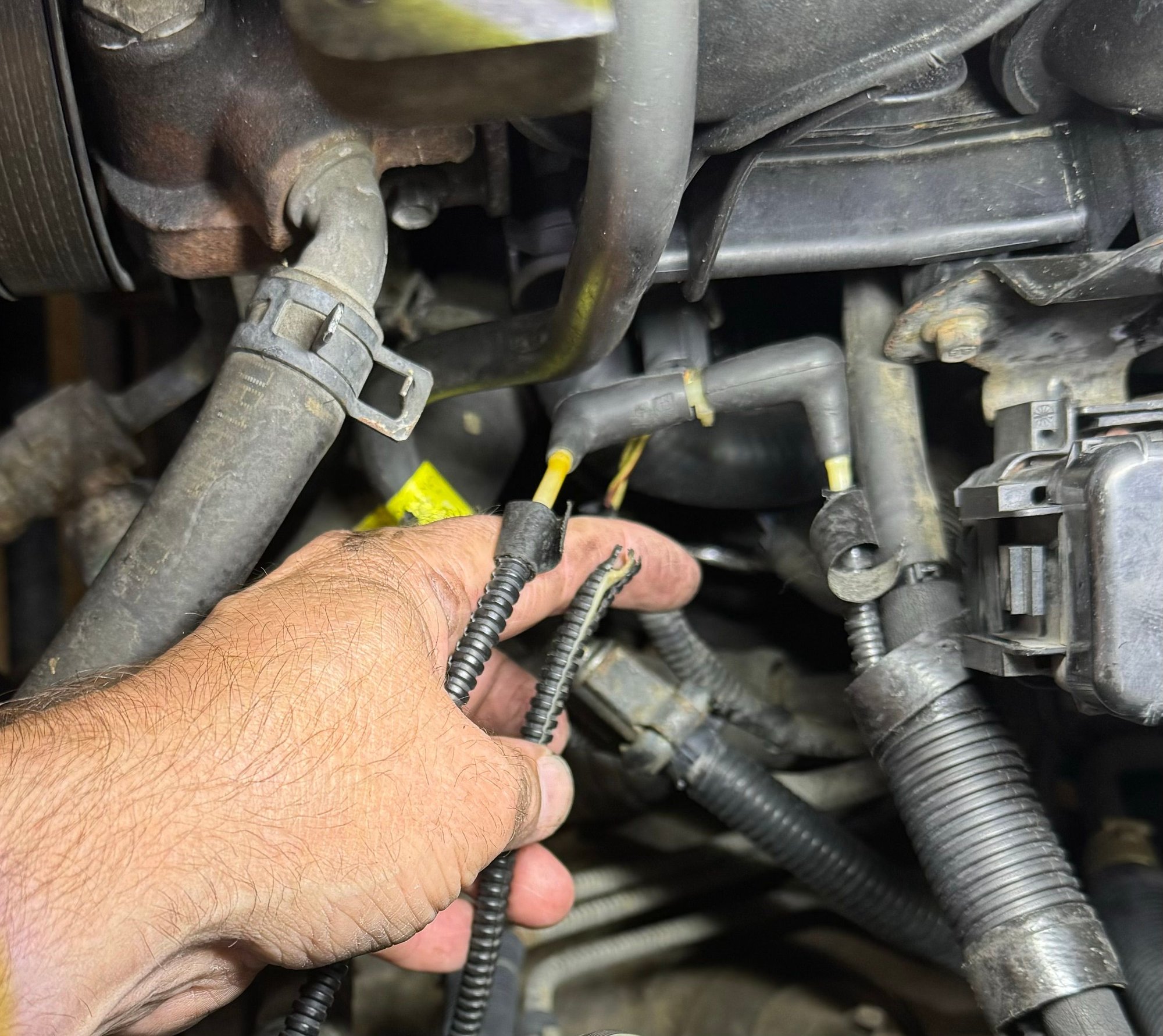 my truck started idling a little rough. No CEL but I did have a pending P0455 code (EVAP leak). I did some looking in the engine bay and found a melted vacuum line. I looked in and around for the other end but am unable to find it. I’ve attached a pic of the culprit if anyone can give me some assistance. Truck is an 03 B2300. TIA! The melted vacuum line is touching my pointer finger. The other end loops around and connects to another vacuum line just above my finger.