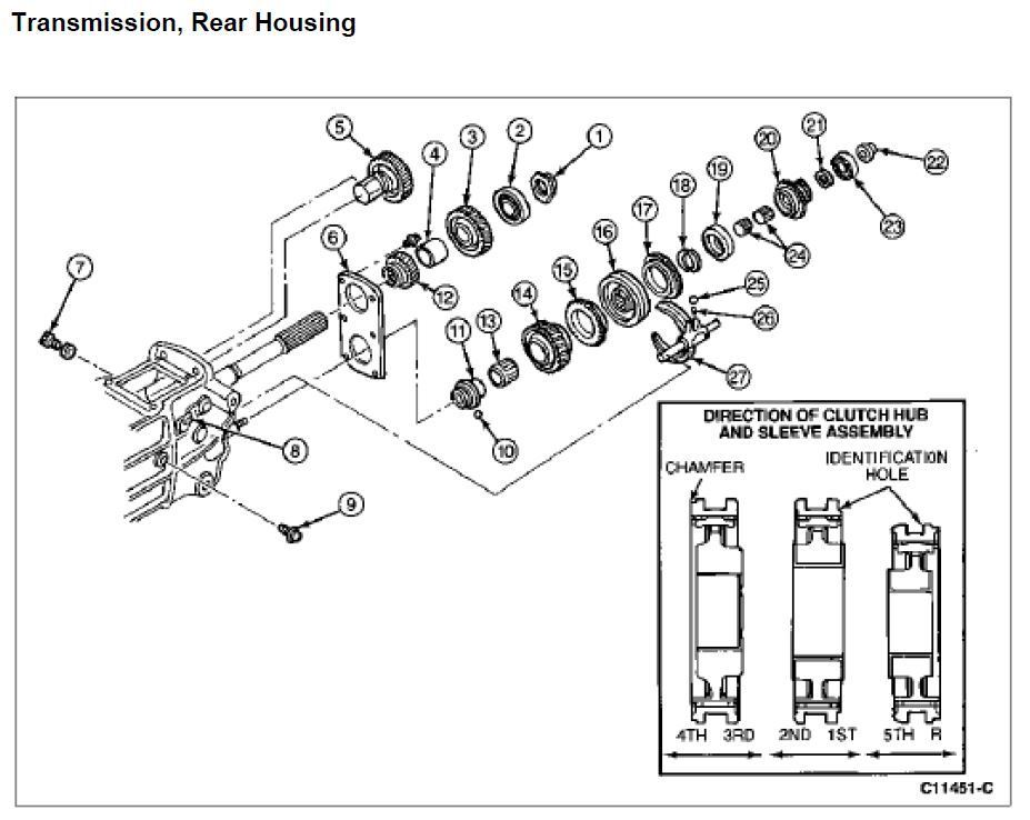 You don't have rattles in any other gears, especially in reverse? I don't know what exactly would cause a rattle like that, especially since the transmission otherwise seems to be working fine, but it looks like when the 5th-Reverse synchro engages with the gear for 5th on the countershaft, then and only then you're getting the noise. Since the synchro seems to be working fine, maybe you just have a bad countershaft and/or output shaft 5th gear (#14 and #12 respectively). You potentially could pull out everything shown in this diagram with the tranny still mounted to the engine. What's unknown to me is how difficult it might be getting the linkage that operates the shift fork matched-up with the fork. That's a three hand job with the tranny out and the top cover off.