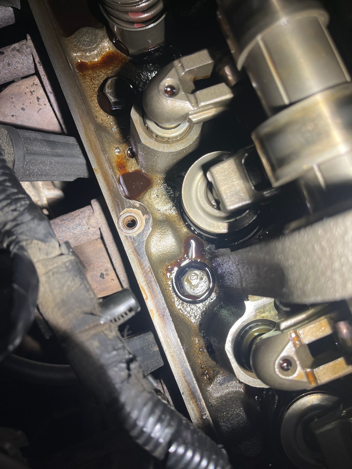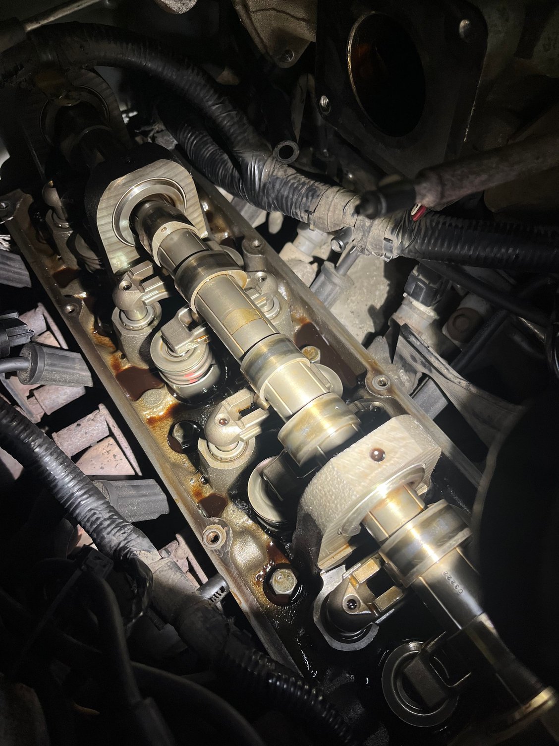 I could probably sneak the oil pan out past the I beams and crossmember but Im not sure if its that bad yet, l had the valve cover off while I had the TB off just to get an idea of how shes doing, I saw nothing out of the or