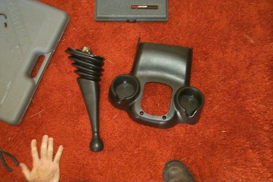 Here's the factory boot removed from the console. You will note how heavy the shifter arm feels. That's because all the sound deadening is located around the shift arm. This is how Ford controls the vibrations and sounds from the transmission.
