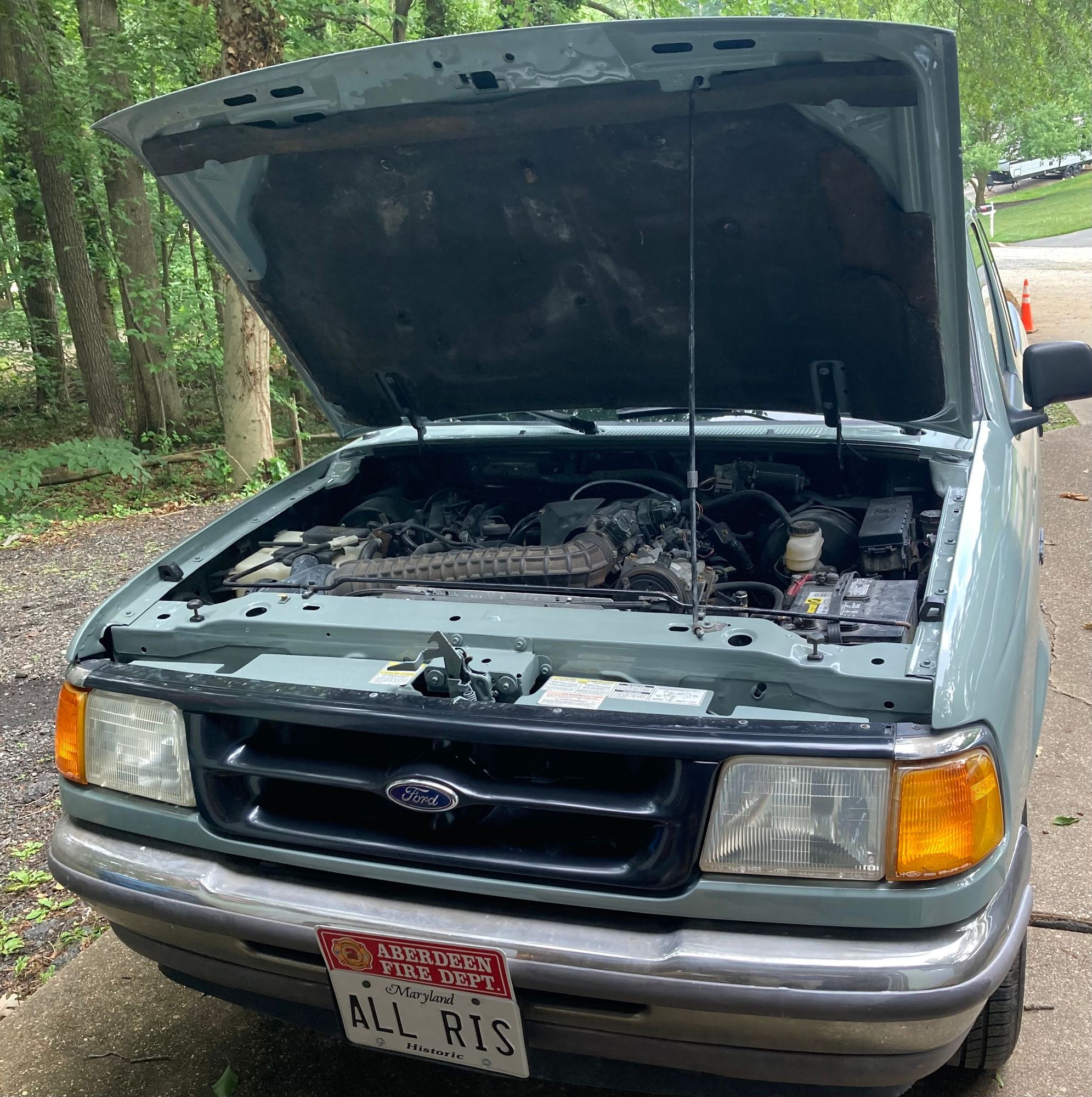 Re-painted inside engine compartment; back of cab & front of bed; inside doors.