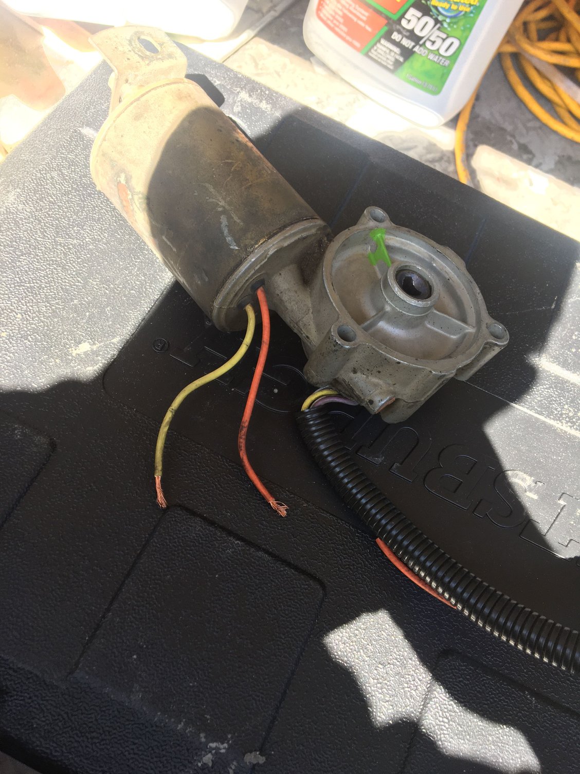 In the first pictures you can see the TWO Orange and Yellow motor wires, these are 12volt and Ground wires, this motor works the same way power window motors work: