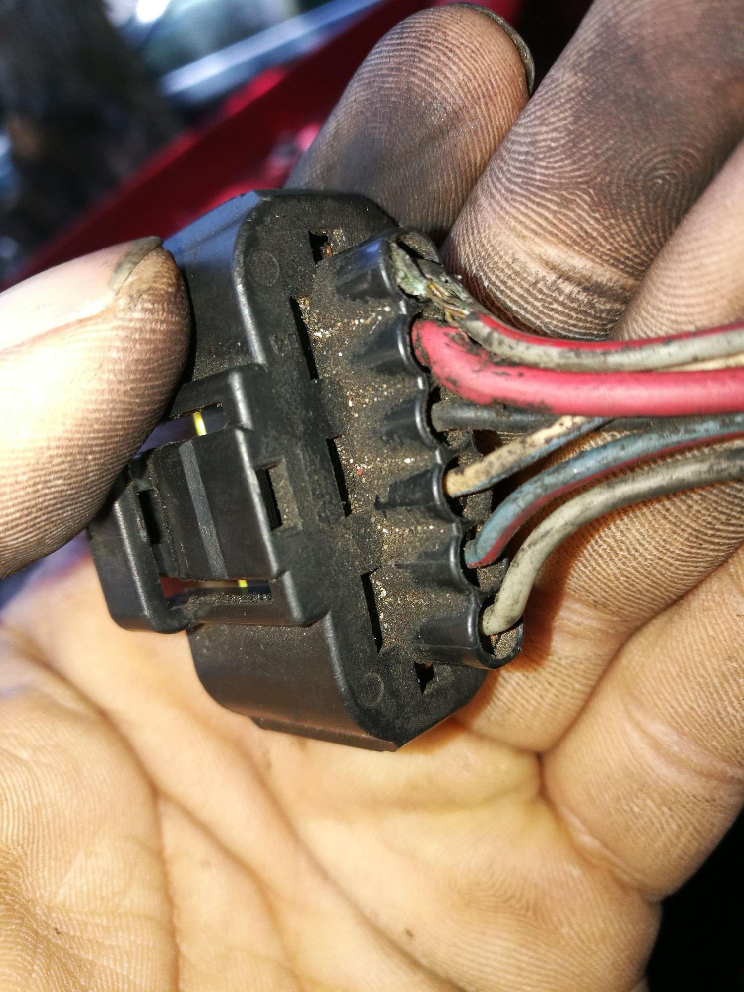 Anyways, the engine starts up fine and then starts to vibrate after a minute or two and you can visibly see it shaking. You mentioned partial misfires, what can cause this? Bad or faulty fuel injectors? Fuel pump? How do i rule out intake or plenum gaskets? I tested the IAC again and it almost stalled so that's working fine. The MAF sensor has 2 chaffed wires and has some dirt in there. I'll post the pics below. Idk if that could be the cause, I measured the resistance and it came to 3.71 ohms and I also unplugged it while the truck was running and it nearly stalled.