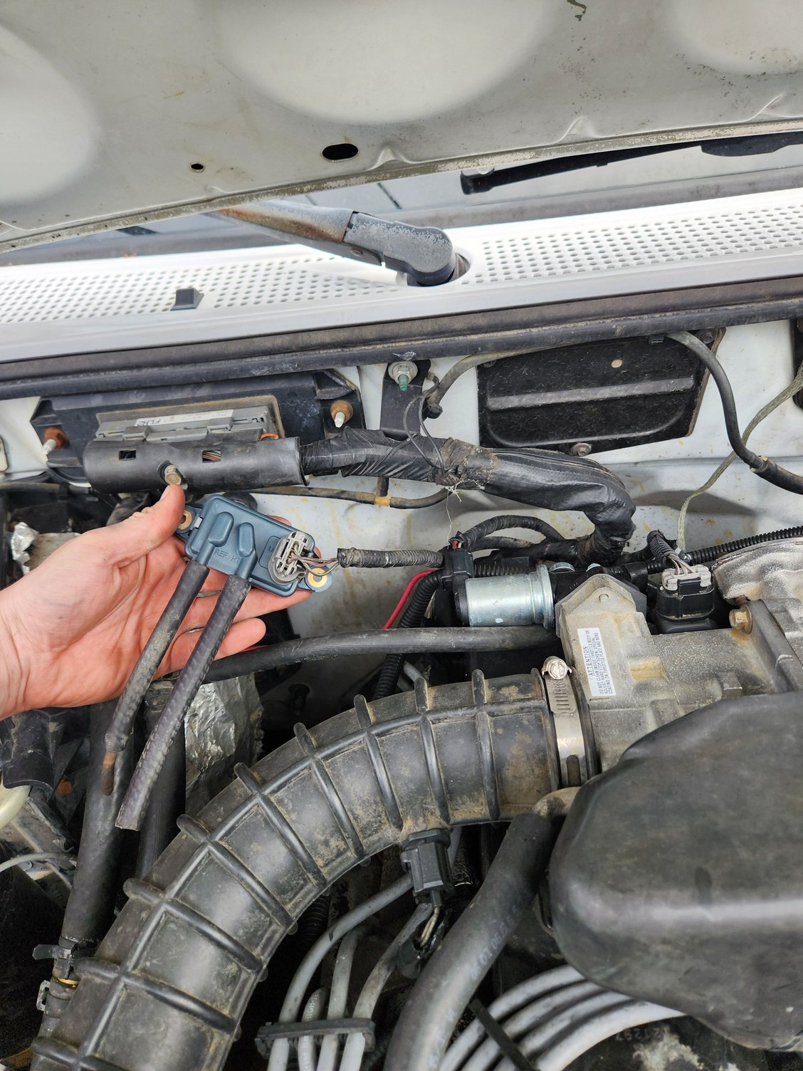 Now I'm getting this P0401 code. Checked the egr valve. It's not there. Previous owner deleted it im assuming. Found the EGR valve pressure sensor and it was corroded. Figured I'd change it out. Went and picked one up. Went to change it and found out the 2 hoses on it arent even connected. Ill attach pictures.