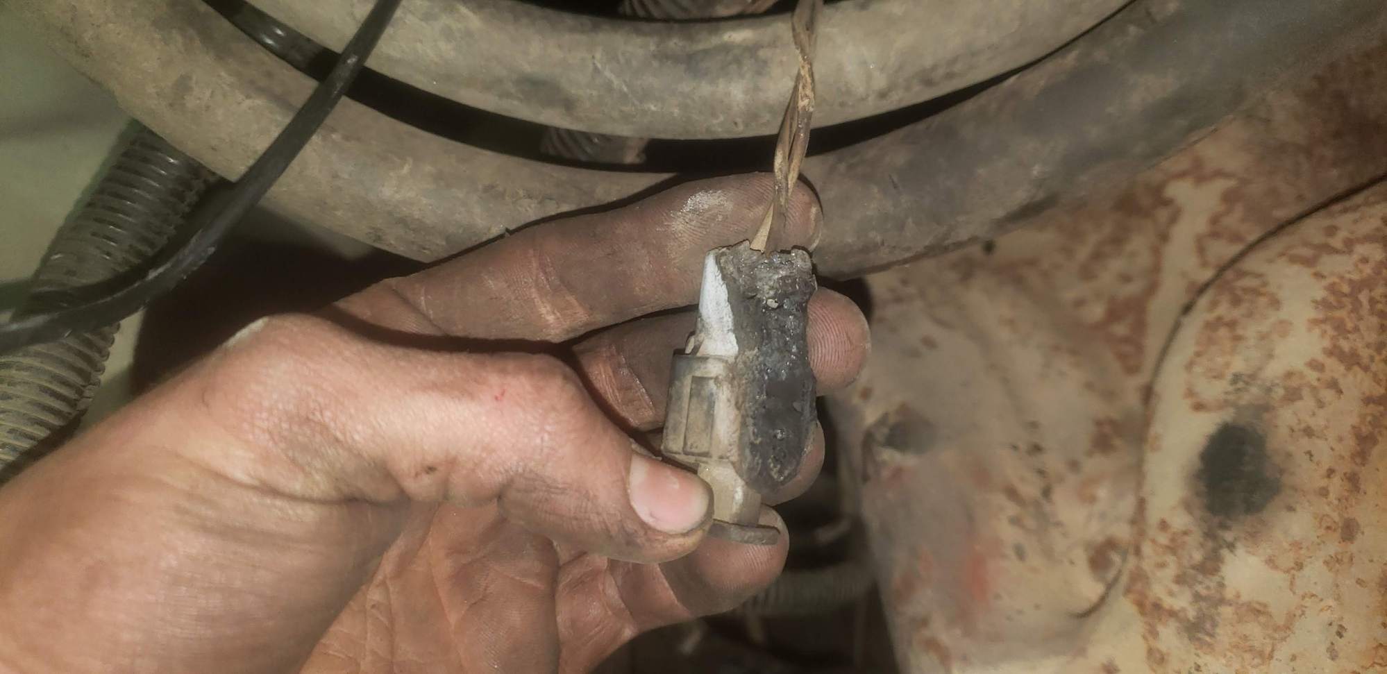 My 1987 Ranger has not ran well at all since I overheated it some time ago. I made a post about it awhile ago that included videos of the truck running, and I will paste a link to it if you want to check it out for reference. I have had this ranger since I was a very inexperienced mechanic and it has taught me a lot, but i also made many mistakes on this truck. The area of the truck that my ignorant hand wreaked the most havok on may be the wire management under the hood. Somewhere in the mess the inline spout connector decided to get cozy with the exhaust manifold and is now in tough shape, I have a picture below. As I understand it, the spout connector is merely a static plug that connects the two wires that go into it when it is installed. What problems could I expect to encounter with the plug in its current state? Could this in itself cause a rich mixture (or false positives that would lead one to suspect a rich mixture?) or bad timing? How do I go about fixing this? I was considering wiring in a toggle switch in its place please let me know if that is an awful Idea before I do it.