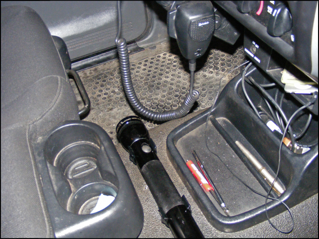i finaly got around to mounting my mag light. i put it beside the drivers seat.