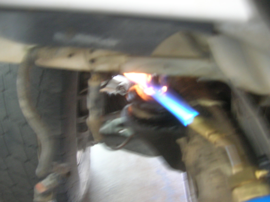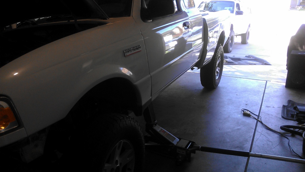 drove down to help curt do his body lift. everything went very smoothly.. until we got to the front cab bolts near the radiator. so we broke one and cut the other.
