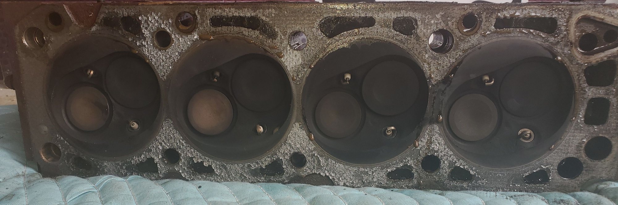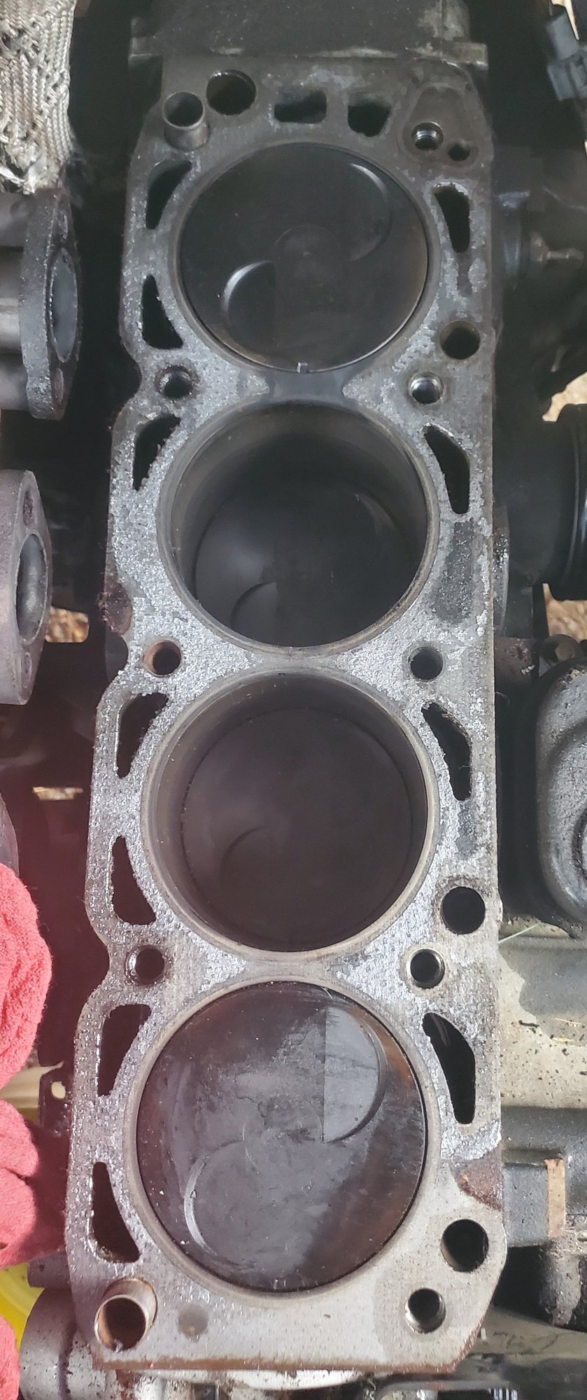 Here is a picture of the 4 cylinders. I do not see any vertical scratches or grooves. As someone who has not removed a cylinder head or tore into an engine I am not qualified to say if this looks ok or not but nothing jumped out at me as being overly bad.