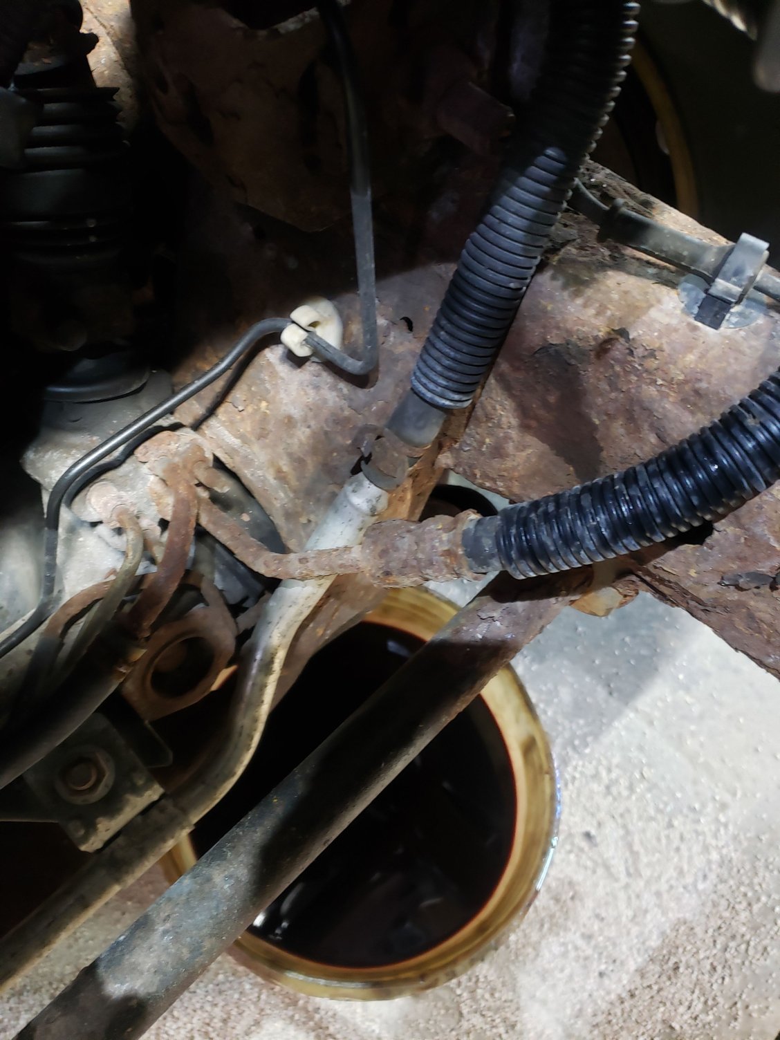 Those outlets are a tad corroded but not terribly scary. Power steering pressure hose was rotted pretty good. What 17 Michigan winters will do.