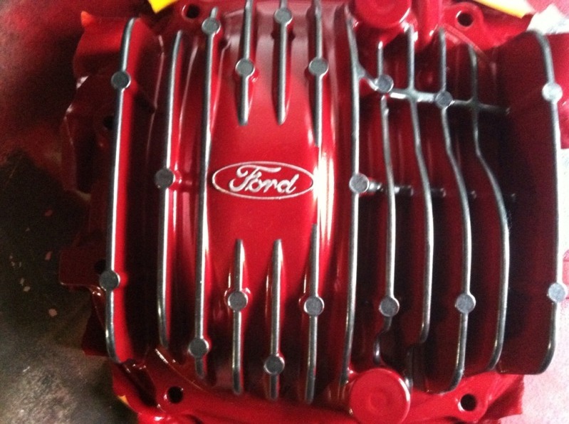 Well I went to install the prototype Shelby diff cover today. Turns out the 1 inner fin comes too close to the 4:10 gears, so I am not going to use it. I figure I would rather see someone use it than have it on a wall collecting dust. This is 1 of 7 prototype covers for the shelby that Ford made, Ford has since destroyed the other 6, so from what I am told, this is the only prototype cover that reamains. It has been painted Toreador red, silver metallic striping. This cover will be up for grabs on here for a week only, then it goes to auction. I am asking 200.00 shipped obo, shipping anywhere to the lower 48 US states, Priority mail with tracking.
