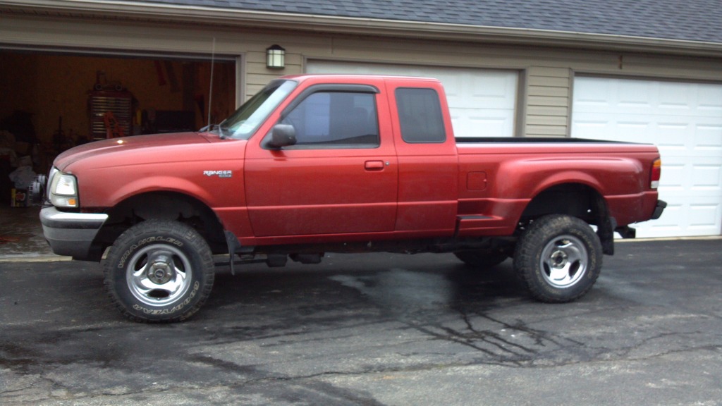 Hey guys. Putting my truck up for sale. its a 98 ford ranger 4.0 4x4 automatic. It is fully loaded with power windows, door locks, tilt steering, cruise control, air and CD player. It has roughly 143k. It currently has a body lift and 33x12x15 Goodyear mud terrains on it on black cragar soft 8's. Recently started making an engine noise and I believe the engine is about done... has had a lot of other maintenance done to it. Trans slips a little as well. Inside it has power leather seats of out an Eddie Bauer along with a full center console. It has an aftermarket Sony Cd player and an overhead console. Also has aftermarket Kc fog lights on it as well. Thats all I can think of for now. Price can be negotiated a little if I take off some of the parts such as wheels and tires. Also can return to stock parts if you would like, cash+your stock parts. Let me know. I can be reached for further info through text/call or through pm on here. Cell # 614-632-8771