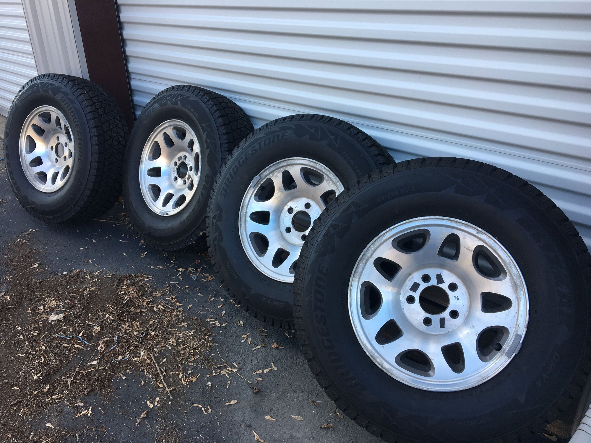 Second, I have a set of Bridgestone Blizzaks, also 235/75r15. These have about 15k, have only been used for two seasons and also have plenty of life left. They come on a set of alloy wheels with TPMS from my 2010 XLT. Looking fro $300.