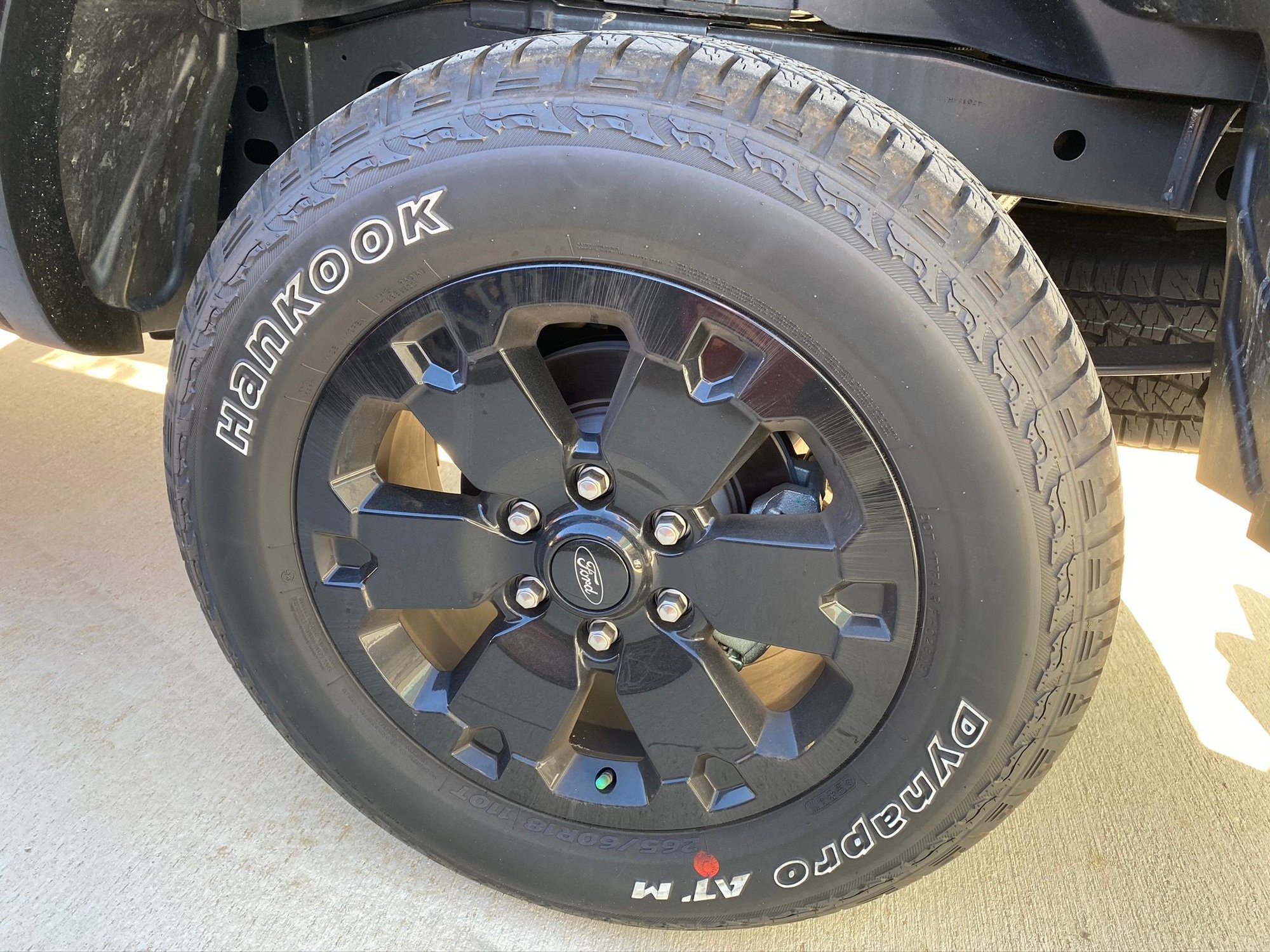 2019 Ford Ranger. Set of 4 mounted & balanced wheels and tires (687 miles) as part of the limited Ford optional Black Appearance package. Included - ALY96697U45 Ford Ranger Wheel Black Painted - Hankook Dynapro AT-M - Size: 265/60R18 - TPMS Sensor - Ford (HC3Z-1A189-A). Price $1,400. Call or text 407-810-5595