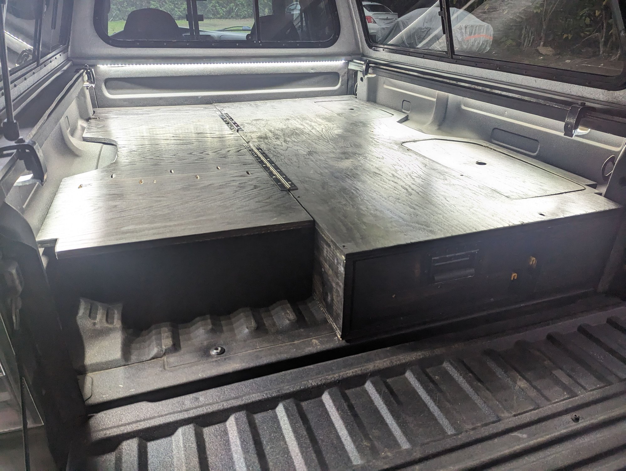 •Custom sleeping/drawer platform in bed w/ led lighting