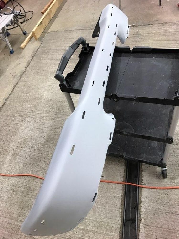 steel bumper is not sandblasted yet in this photo plastic cleaned and texture basically gone difficult to sand the inside corners