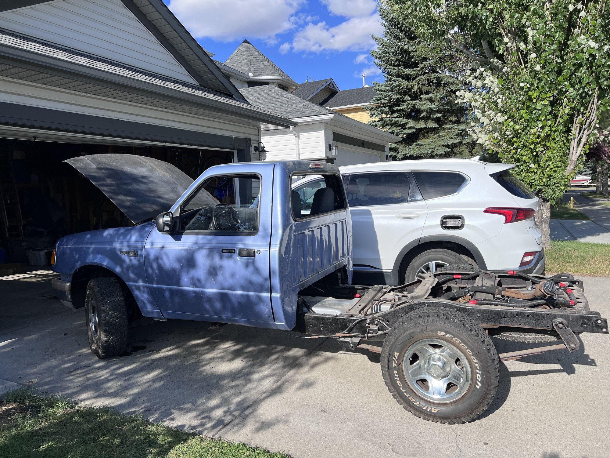 This is my sons project, a 97 Ranger cab/box mounted to 97 Explorer 5.0. Swapping interior and all wiring to simplify the process (lol, nothing simple yet on this).