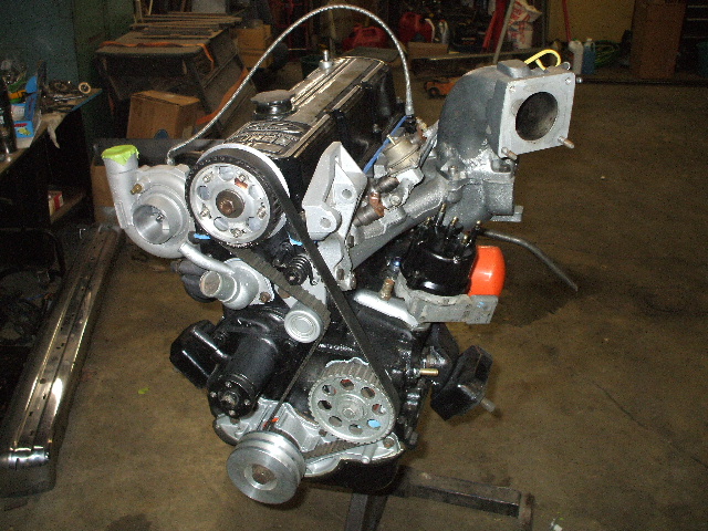 Well back to finishing my motor tonite. Got the valvetrain all setup and closed up the engine for good. Turbo mounted,lines run and this is about all thats going on motor before it gets dropped in.