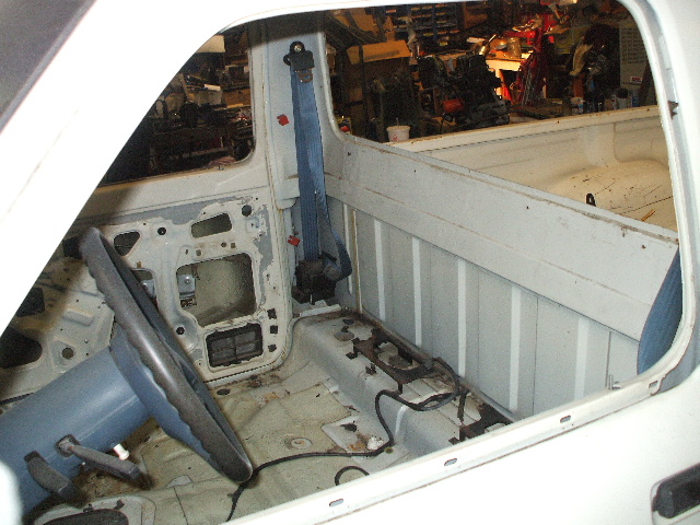 Stripped off all the factory blue and the rattle can stuff and took down to bare metal. Truck is gutted and only can find about 3 small dings that need to be fixed.