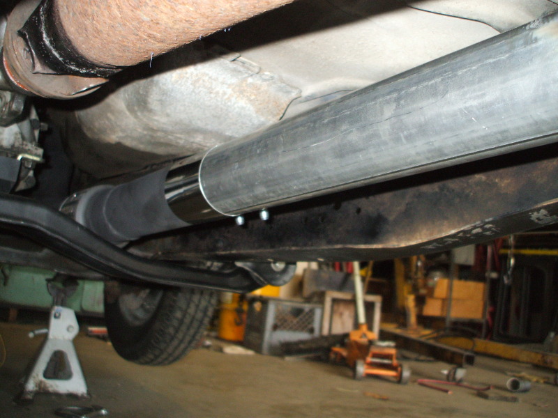 All 3" from the turbo to the tail pipe. I reused my old downpipe off my Merkur since it already had a V-band clamp on it and it fit the Ranger perfectly...just not the prettiest welds since I made it about 4 years ago. I added a flex coupler and a band clamp so the whole system comes off easy in 3 parts. I used a Dynomax Stainless Ultraflow.