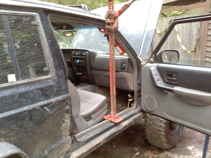 ALSO, do not proceed to bash me for my old jeep sitting on logs. NO ONE has, or will be underneath it. IF it does fall, its out of harms way from damaging anyone, or anything (other than the jeep itself). and I know someone will point out the cinderblocks under my jeep in some of the first pictures, they have jack stands sitting on top of them. I'm aware its also unsafe, but as before, no one was underneath.