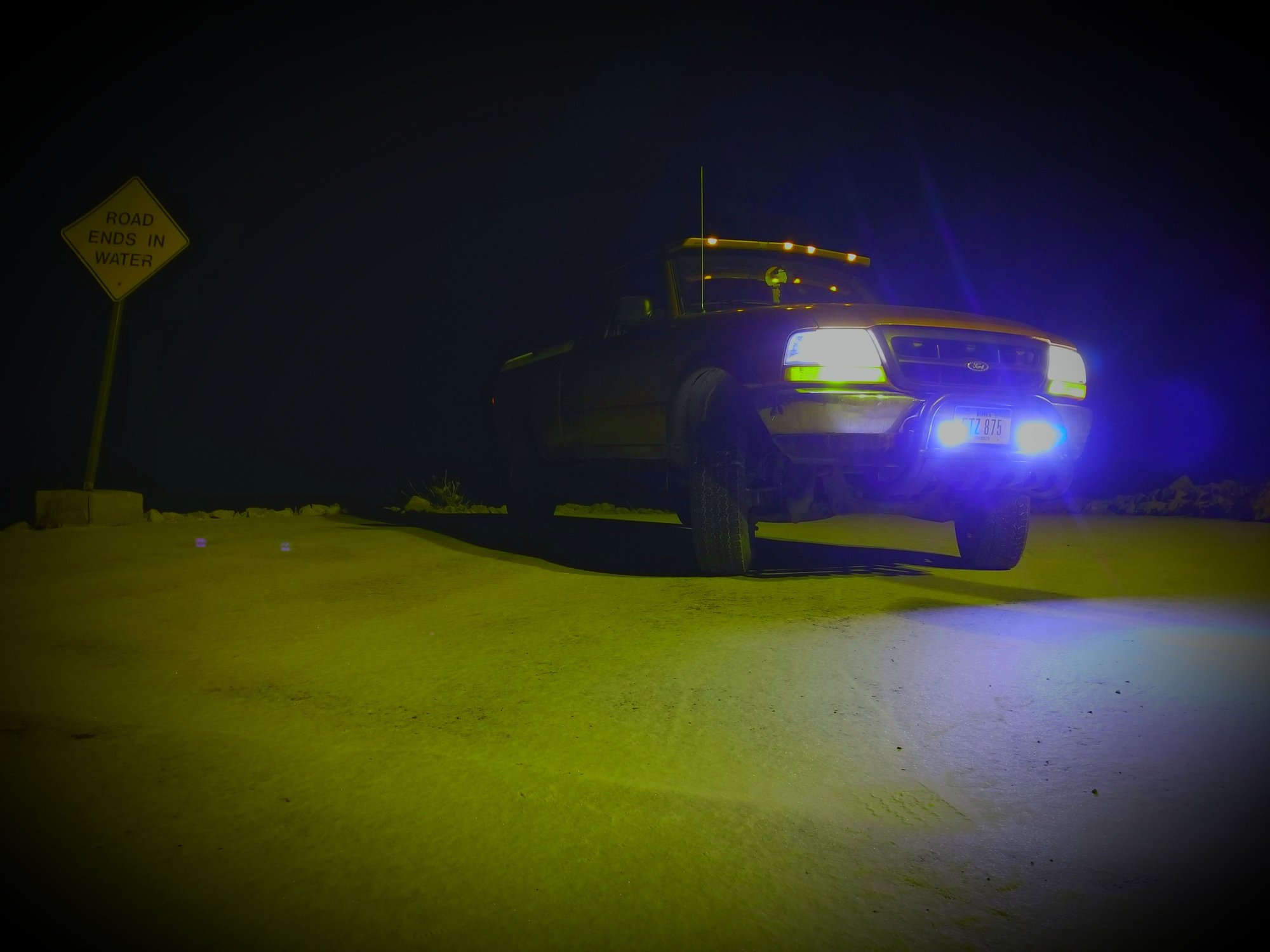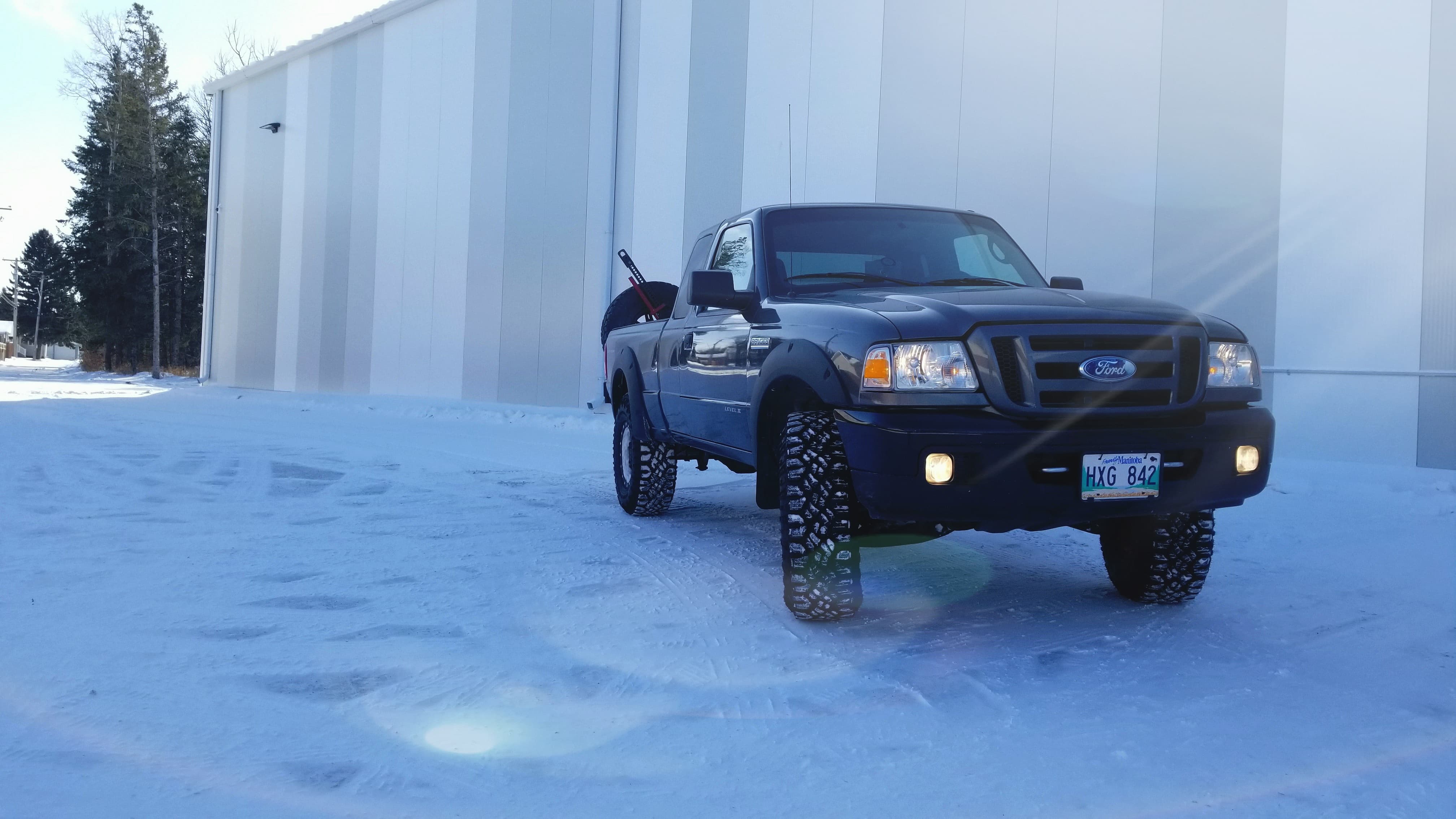 After having some fun in the snow, the black truck is starting to look white. Its suppose to warm up this week so, going to wash the salt junk off! This photo was taken around Christmas, so hence the wreath on the grill.