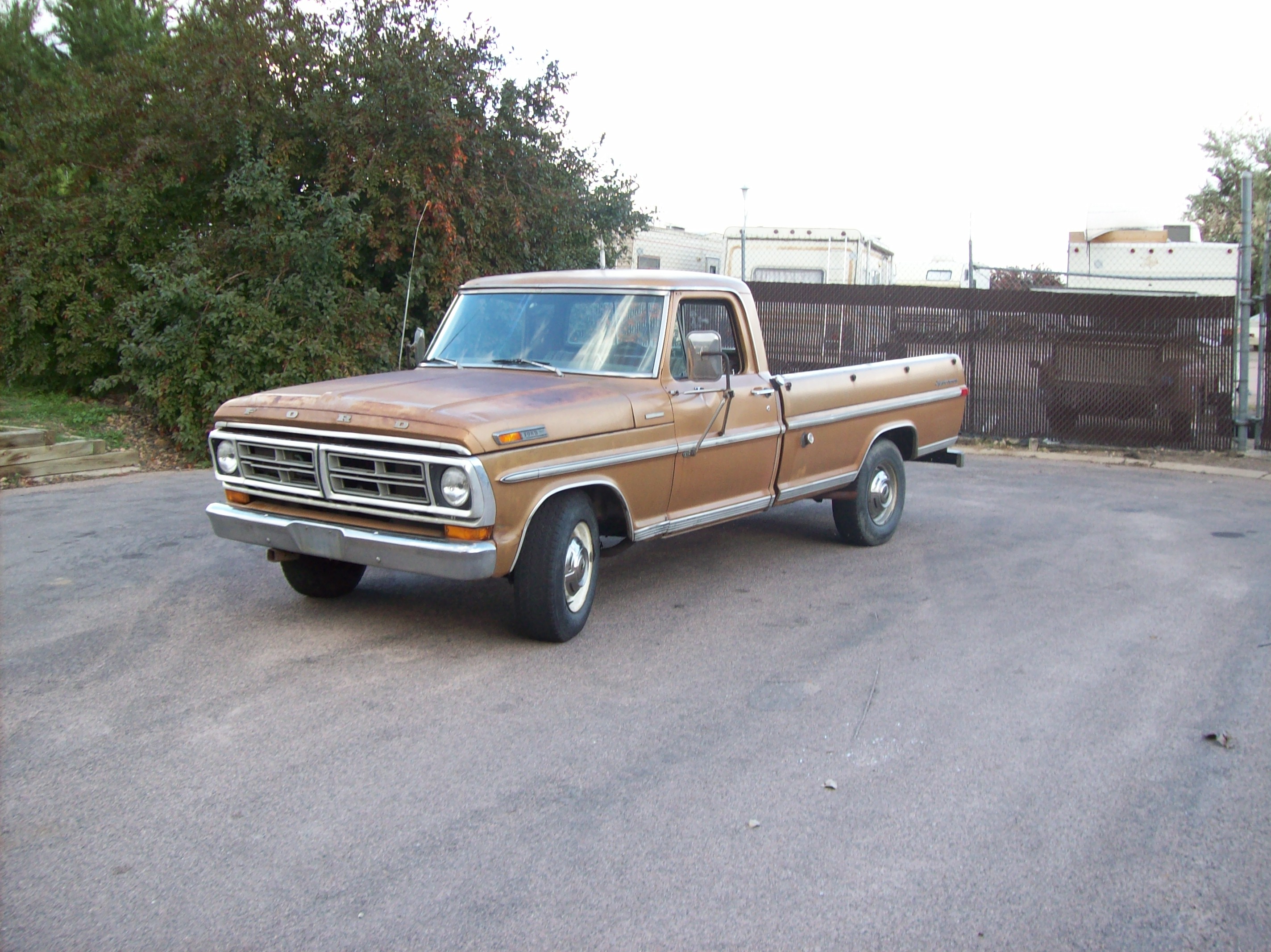 Dads old 72 Ford F250 Ranger. Fully rebuilt 390 with new automatic, new power steering and new tires. Dad paid $300 for it as the guy wanted it gone.