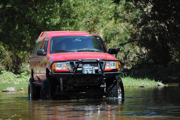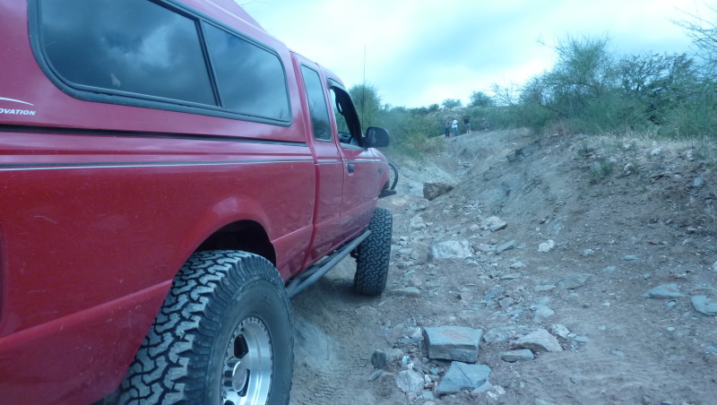 Thanks! That was my goal with this truck and still is. Very capable but not too wild. It's a somewhat of sleeper on the trails for the most part, I've heard so many pickup truck jokes and Ford jokes I'm set for a long time. It shows up those Jeep guys each time. It also helps to have a decent driver. On that picture taken from the rear with the hill up ahead, some guy in a Cherokee on 38" Boggers, exo cage locked front and rear almost rolled as he took the wrong line. He and his buddies who can be seen standing on the hill laughed and said that cute red truck won't make it. I took the low line, in the notch which can't really be seen as it's beyond the turn, and when I made it up without any problems they just got in their rig and kept on going!