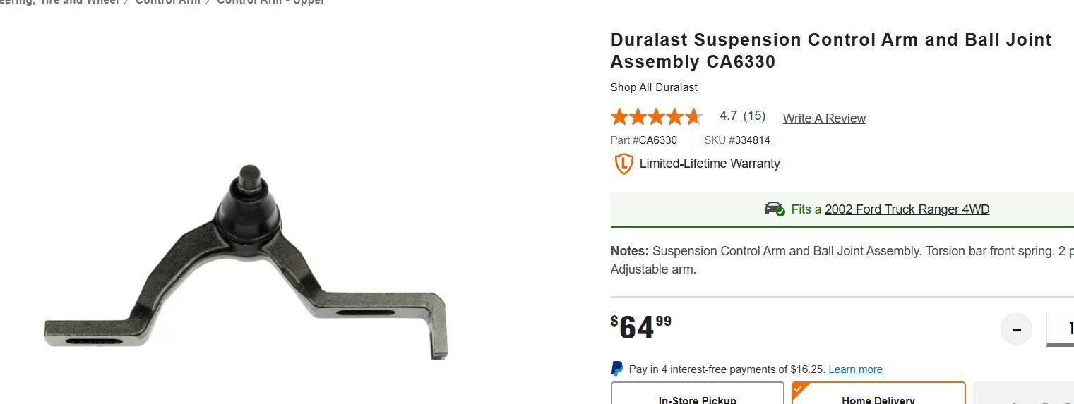 YES! It was. Old is off and new one about $50 ordered from NAPA. The upper part of the control arm with the bushings seemed very good so this is an easy shortcut as opposed to replacing with the new one-piece version.