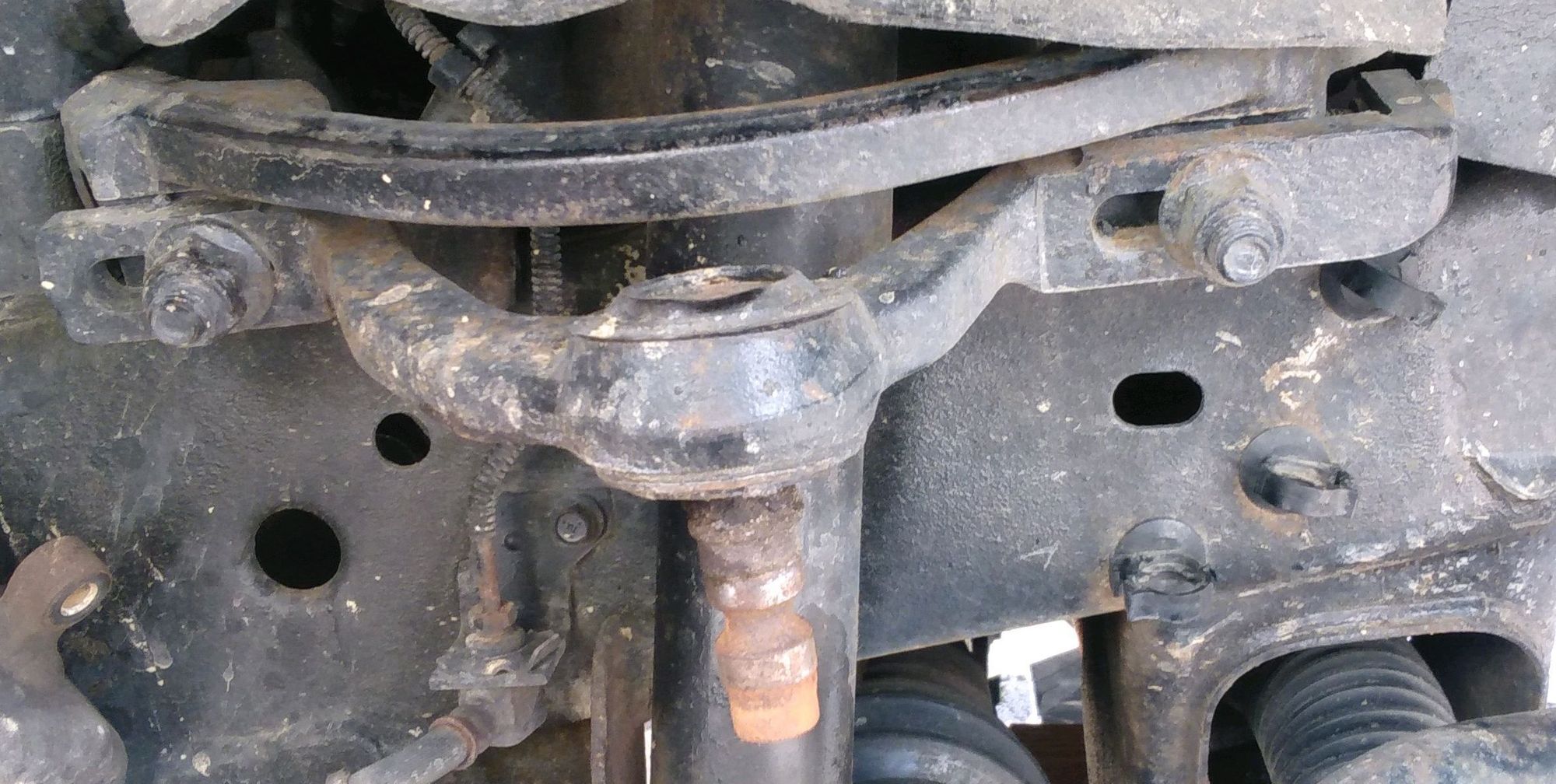 Here's a pic of my (two piece) upper ball joint and control arm and a pic of what I think is the replacement.
