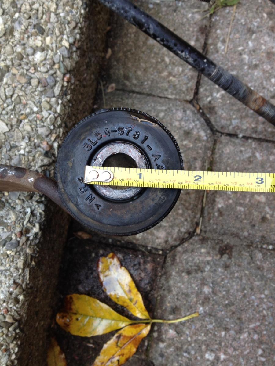 - The front eye-to-frame bracket bolts on my 2009 Ranger were bigger than the sleeves in the bushings that come with the new springs. If I had done this the way I wanted, I would have had inner and outer dimensions for a new bushing, which I would have ordered at the same time as the spring.
