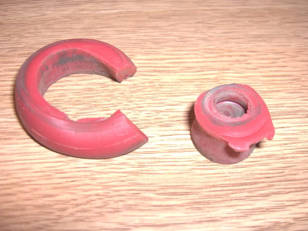 Destroyed bushing: Attachment 213717 Attachment 213718 Destroyed washers, should be pretty much flat, but the bushing make it bend up around the nut in the center which split the one bushing in the pic. Attachment 213719 Attachment 213720 |
